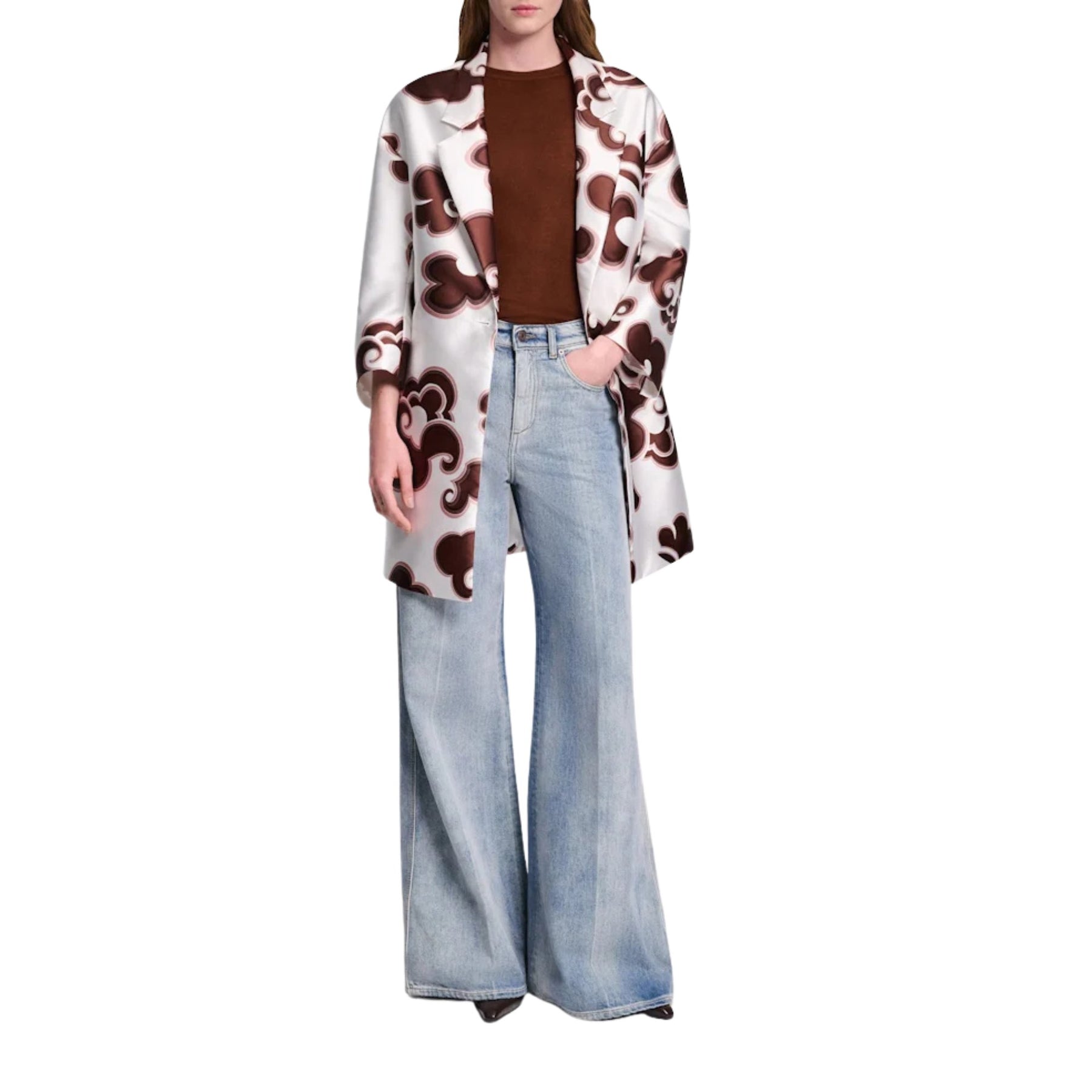 From the collection’s bold Key Print story, the Floral Statement Coat in Off White Chocolate delivers graphic impact with a refined, modern edge. Crafted in printed duchesse twill, this short coat features an oversized silhouette that balances structure with effortless wearability. A classic lapel collar and tailored pocket details lend polish, while the signature print makes it a standout layering piece. Designed to be worn as a coordinated set with the matching shift dress or skirt, it also elevates everyday looks with distinctive statement style.