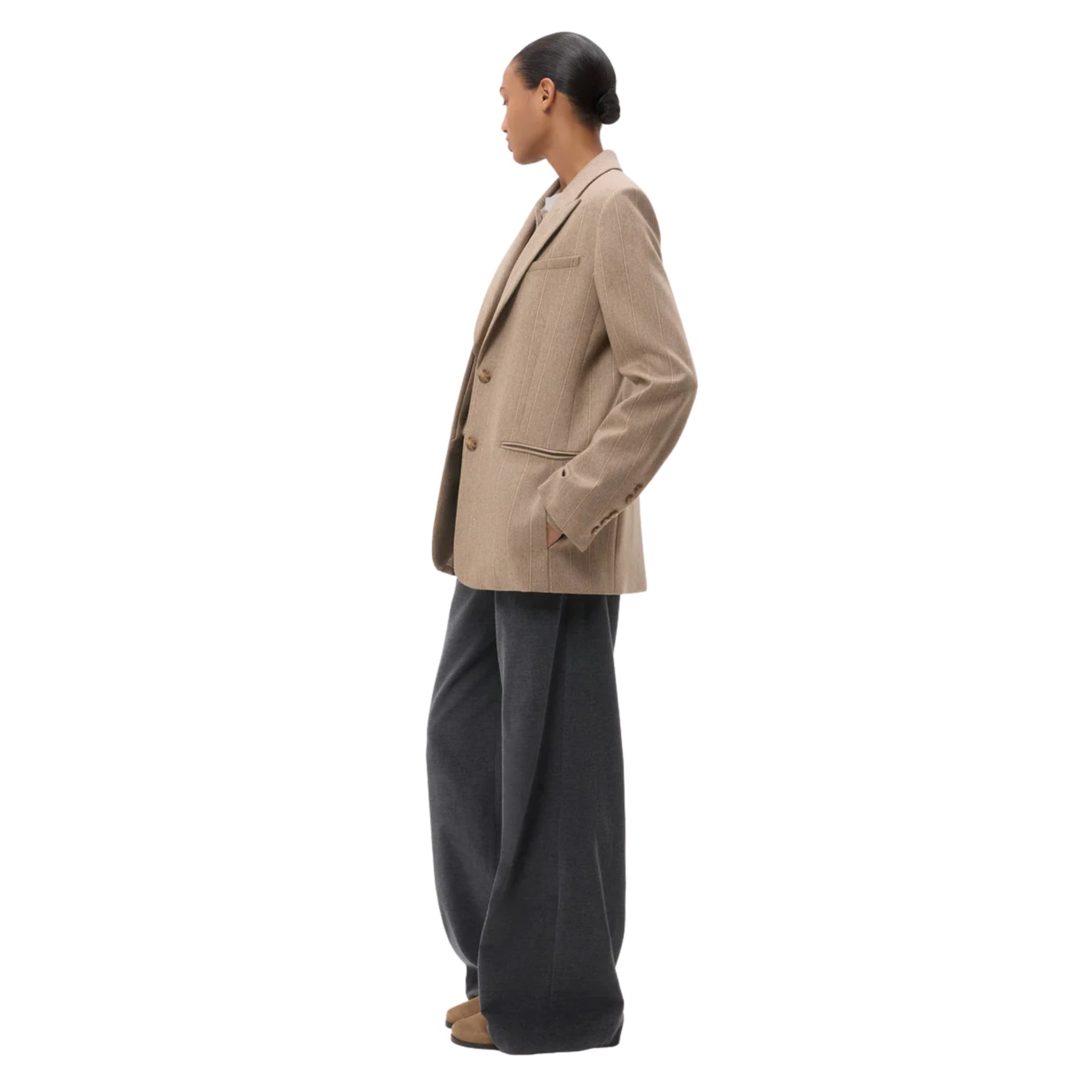 Effortlessly blending classic tailoring with modern ease, the Sweet Pea Without Pintuck Blazer in Timber Wolf Multi is a refined wardrobe essential. Crafted from a luxurious stretch wool blend with cashmere and fully lined in silk, this oversized single-breasted blazer is designed for comfort, structure, and timeless appeal.