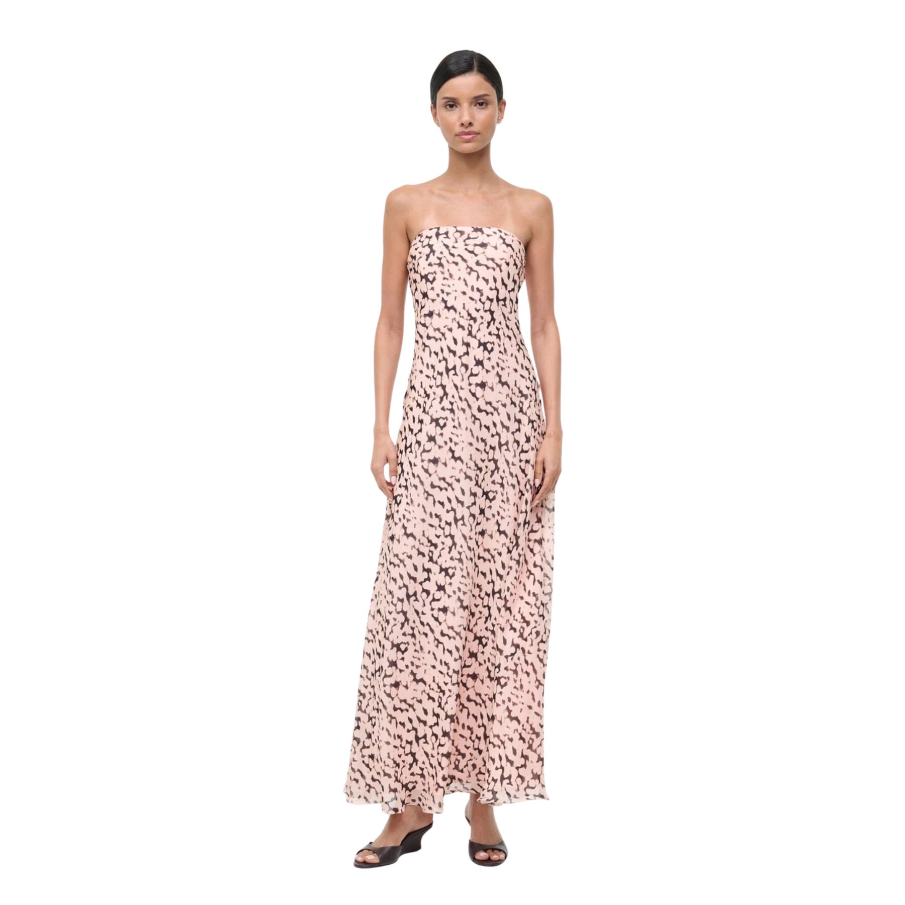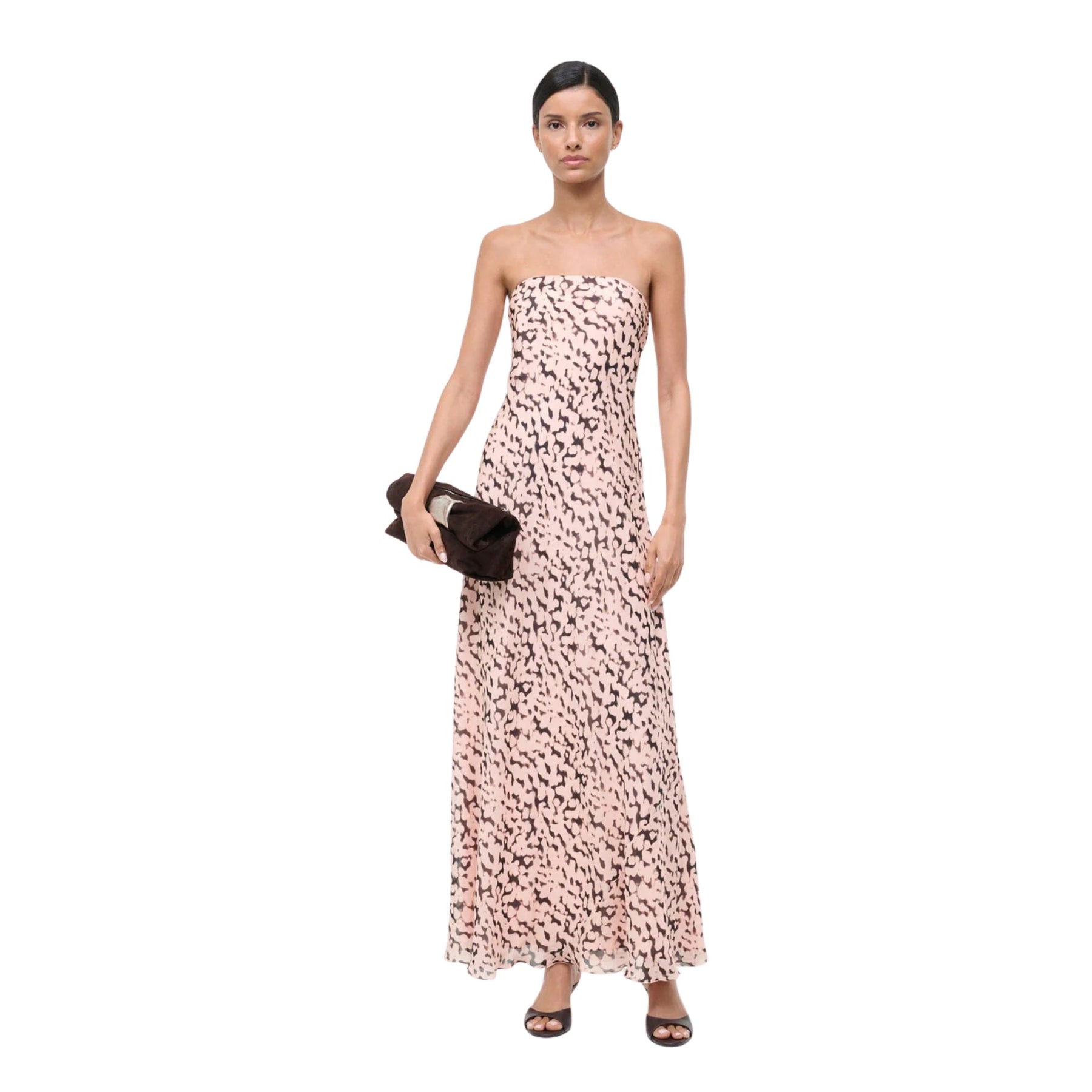 From an elevated occasionwear edit, the Cassie Silk Dress in Almond Black delivers timeless elegance with modern ease. Crafted from luxurious silk with a subtle light tortoise pattern, this strapless maxi dress features an interior corset for secure, flattering support and a softly flowing A-line skirt. Polished yet versatile, it transitions seamlessly from daytime events to evening occasions—style it with flat sandals for understated sophistication or heels for a refined finish.