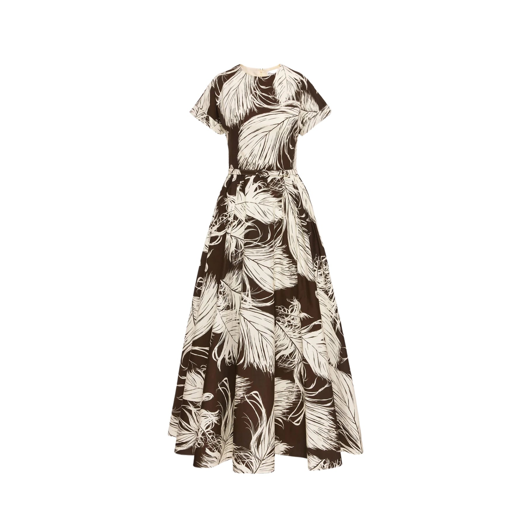 The Feathers Poplin Dress pairs vibrant artistry with timeless shape. Its bold print and structured cotton create a look that’s polished yet playful—perfect for garden parties, daytime events, or elevated weekends away.