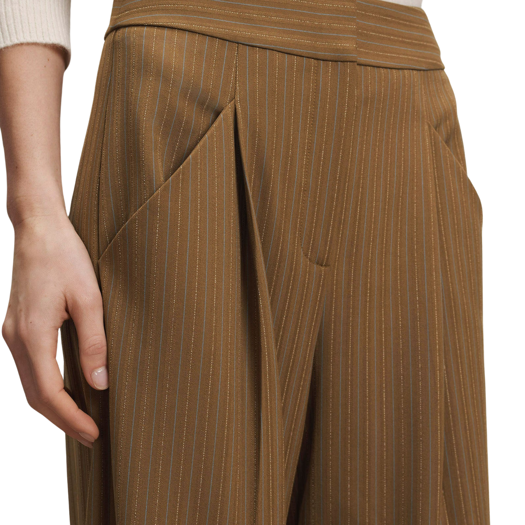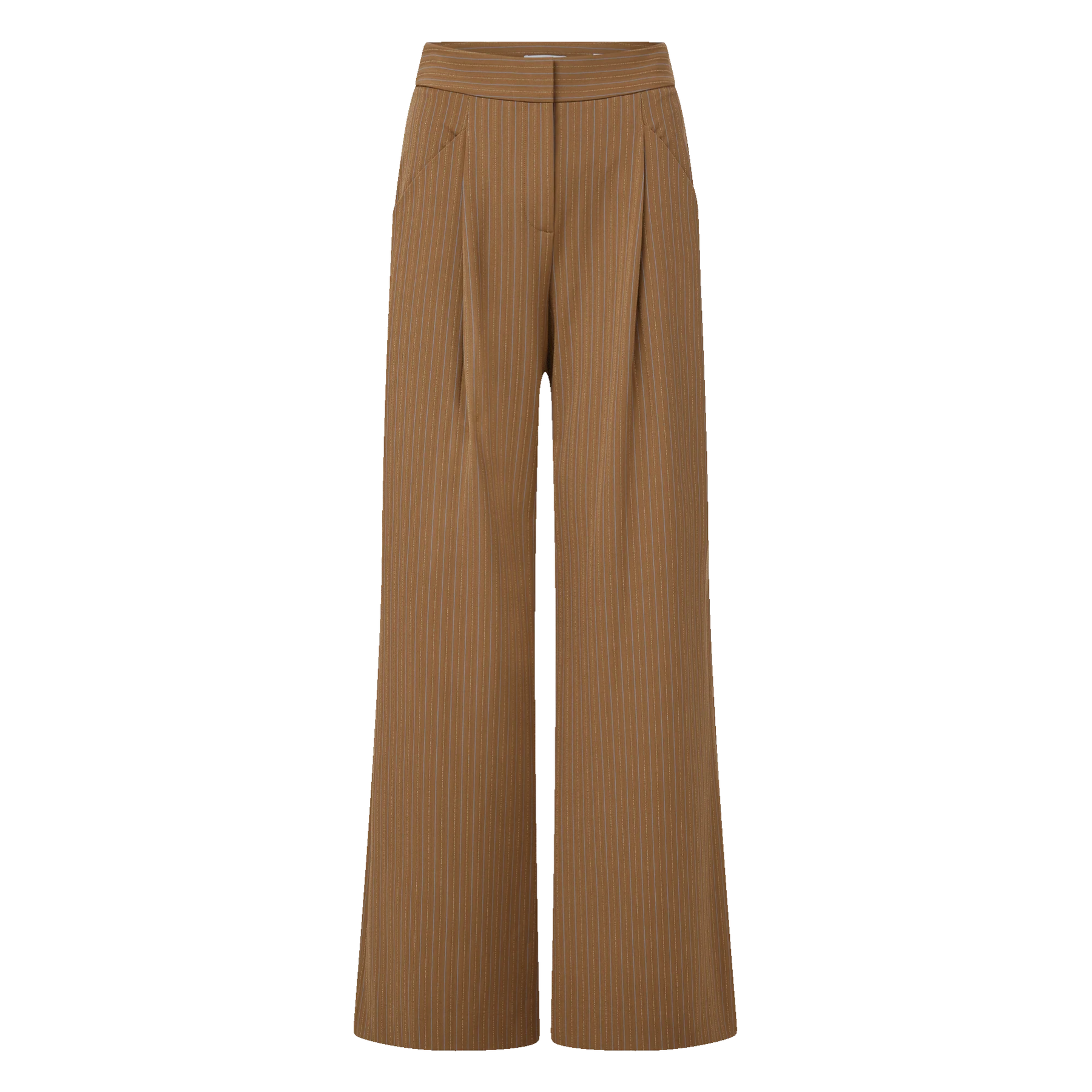The pinstripe pant, perfected. Crafted from luxe midweight suiting in light brown, Rimini is the essential high-waisted, wide-leg trouser—nipped at the waist, softly draped through the thighs. It’s finished with hidden side slant pockets, back welt pockets, and a hook and bar closure for a clean, streamlined look. Pair these trousers with a simple T-shirt or knit for polished ease, or style with the coordinating Rupert dickey jacket for a modern take on the suit.