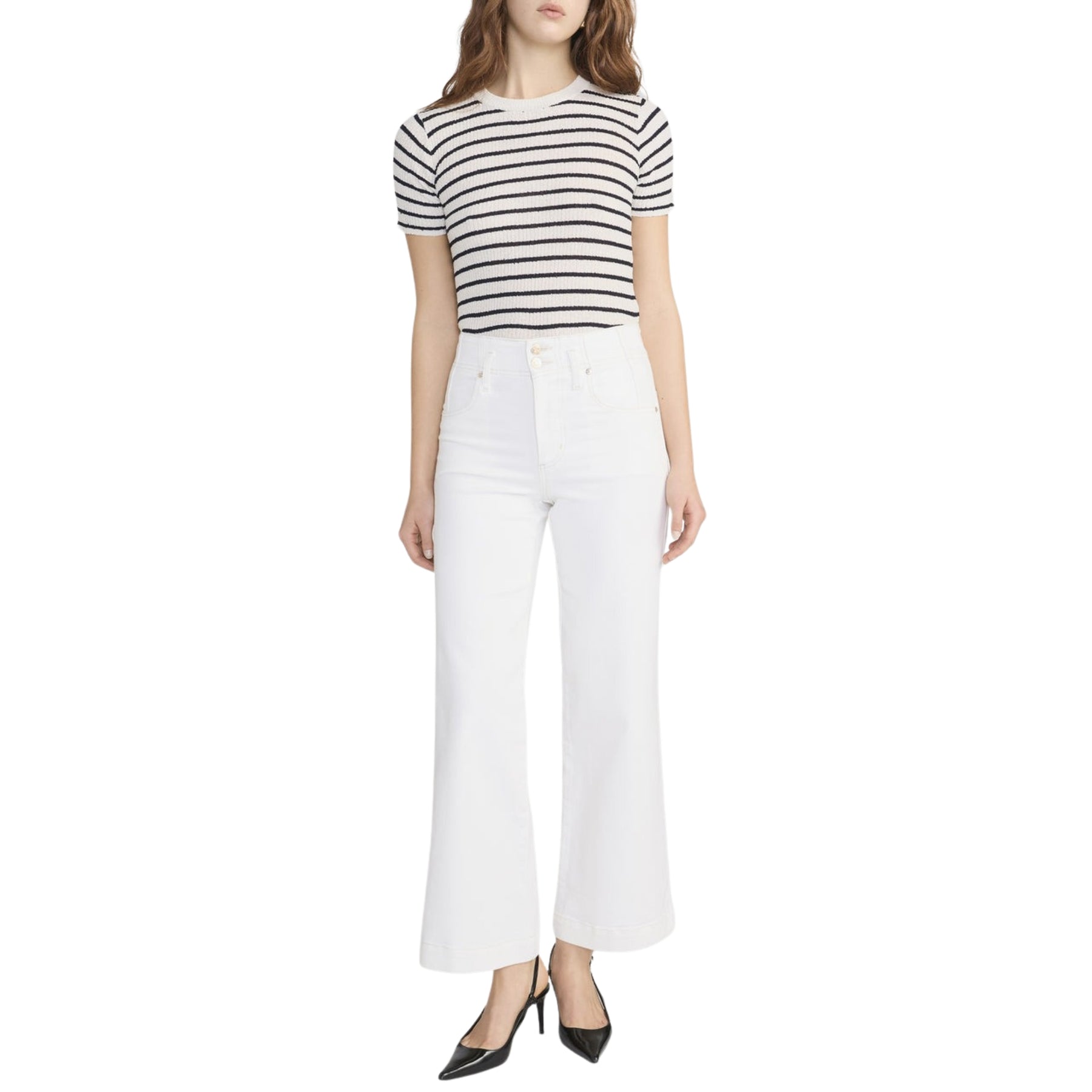 High-rise fit that sits securely at the waist, releasing into a wide leg with a cropped length. Designed to feel structured but comfortable.
