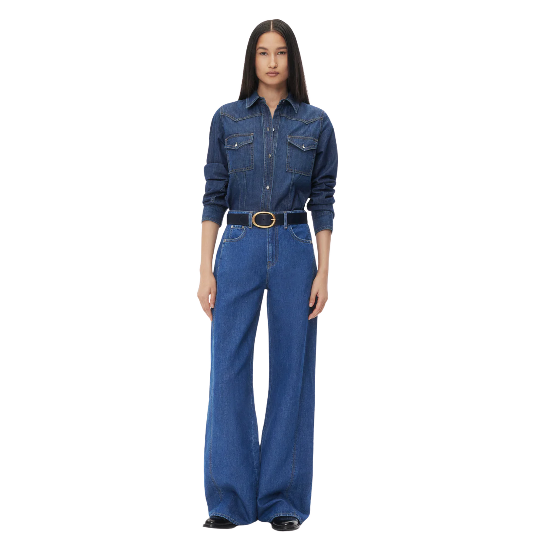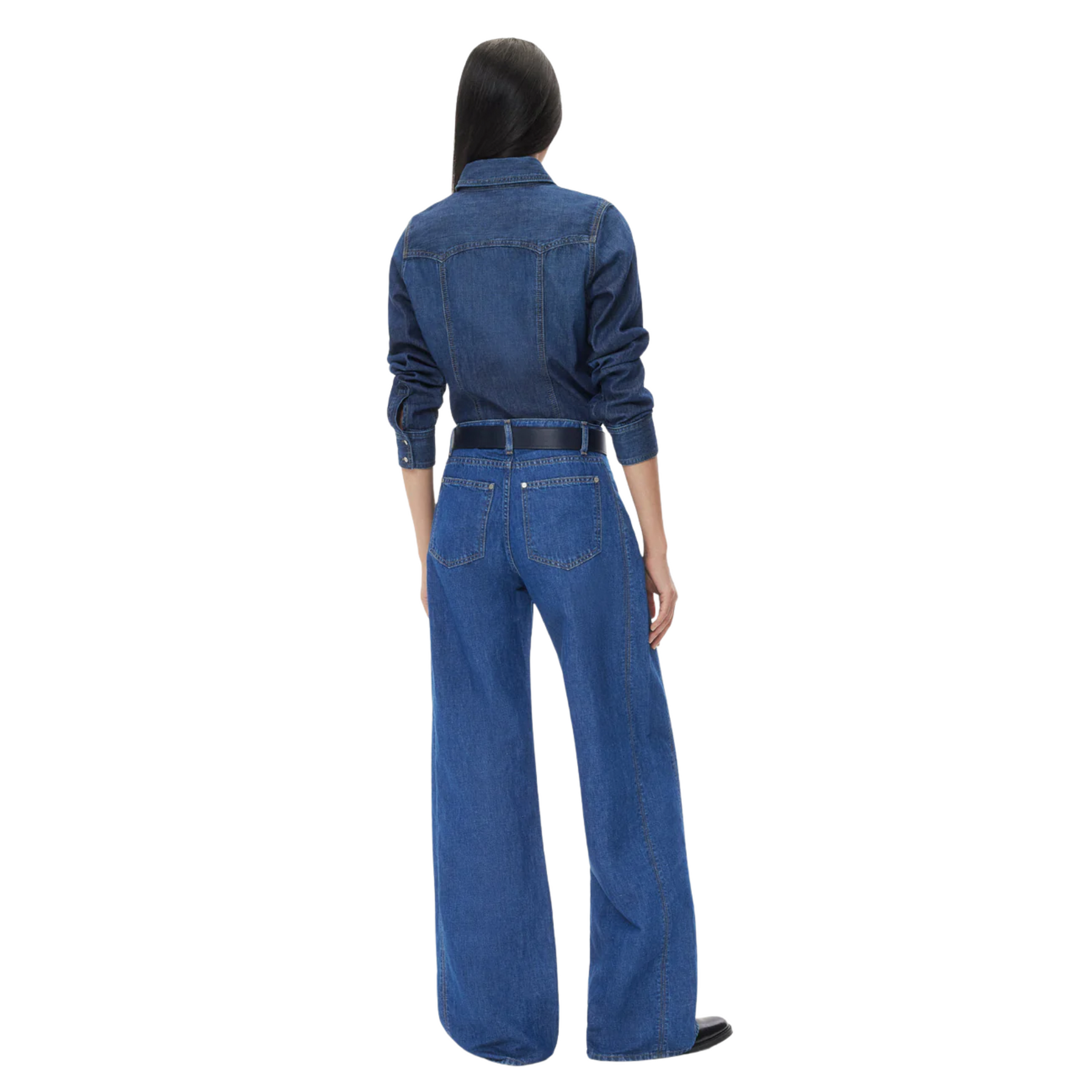 Mid-rise, straight leg jeans in medium-weight washed linen cotton denim, manufactured in LA. West 11th pants are relaxed through the hip and leg. Complete with a five-pocket style, custom applied metal hardware, a zip-fly, belt loops, metal shank at the waistband and contrast stitching at the seams.