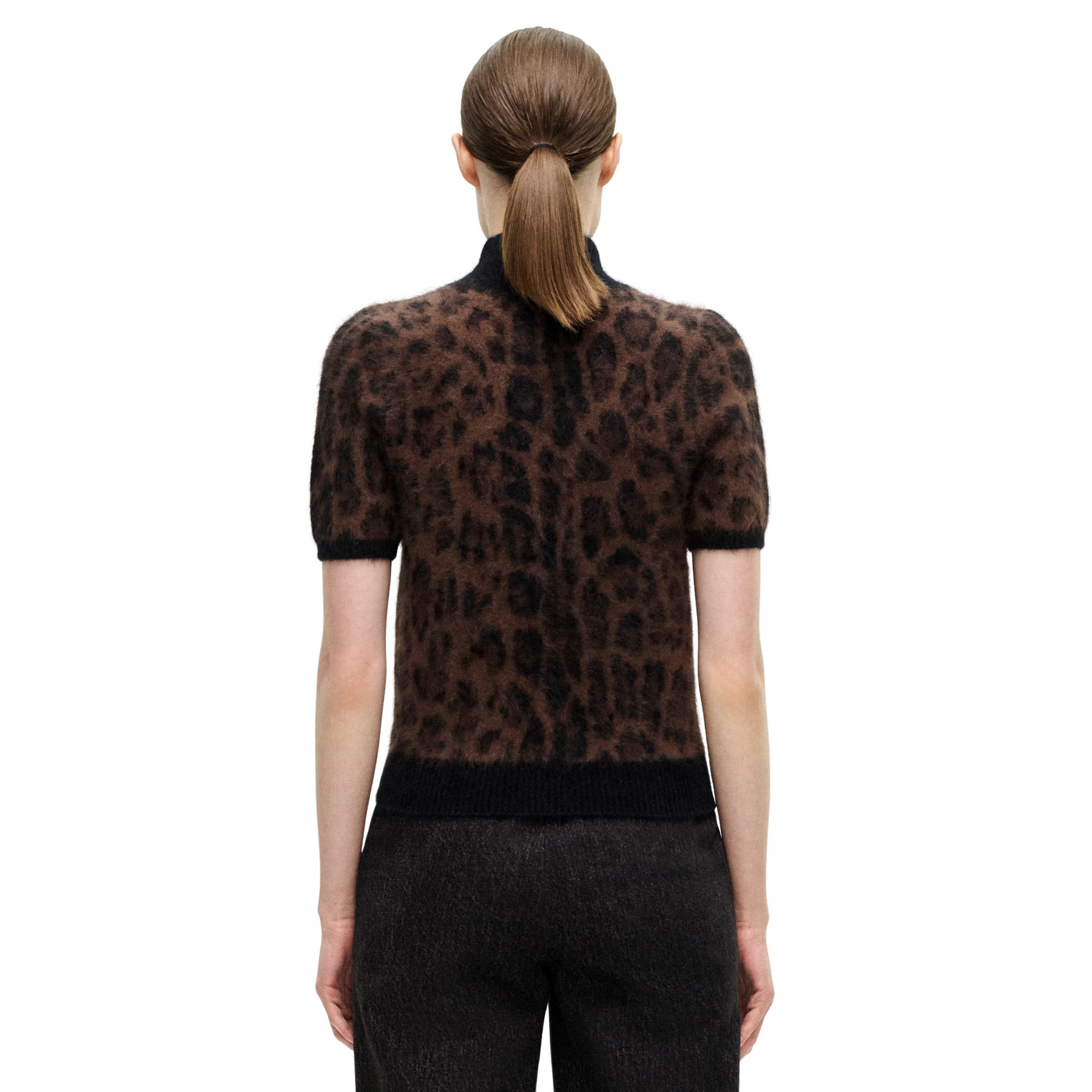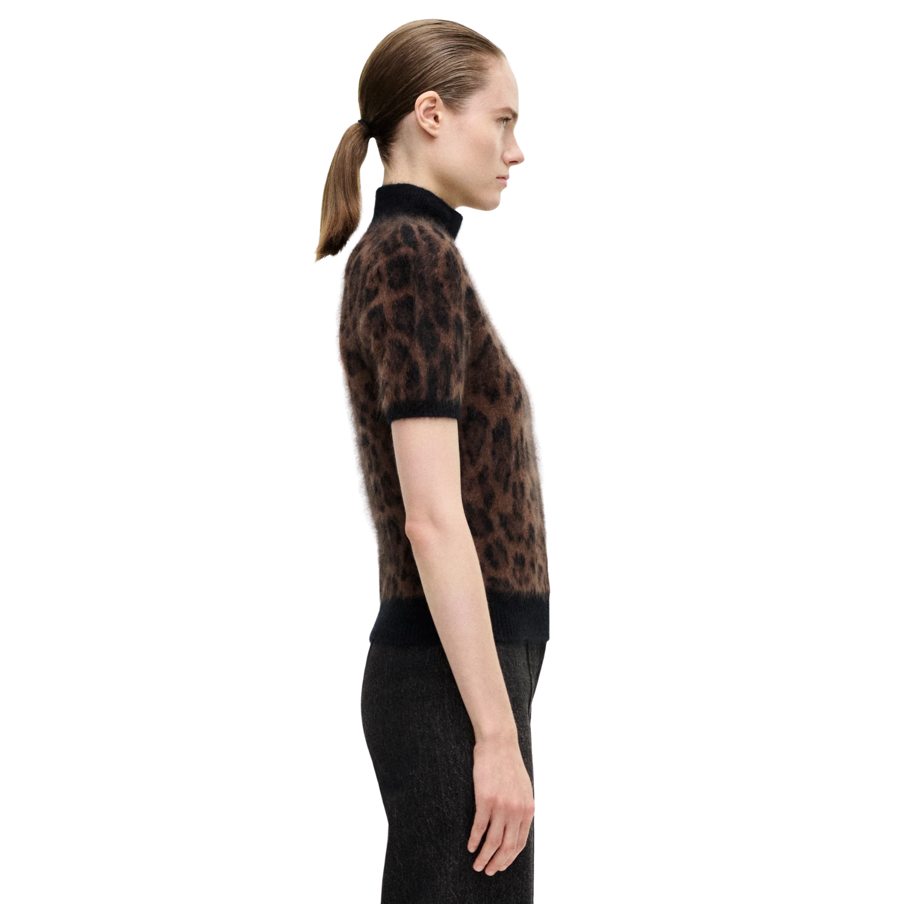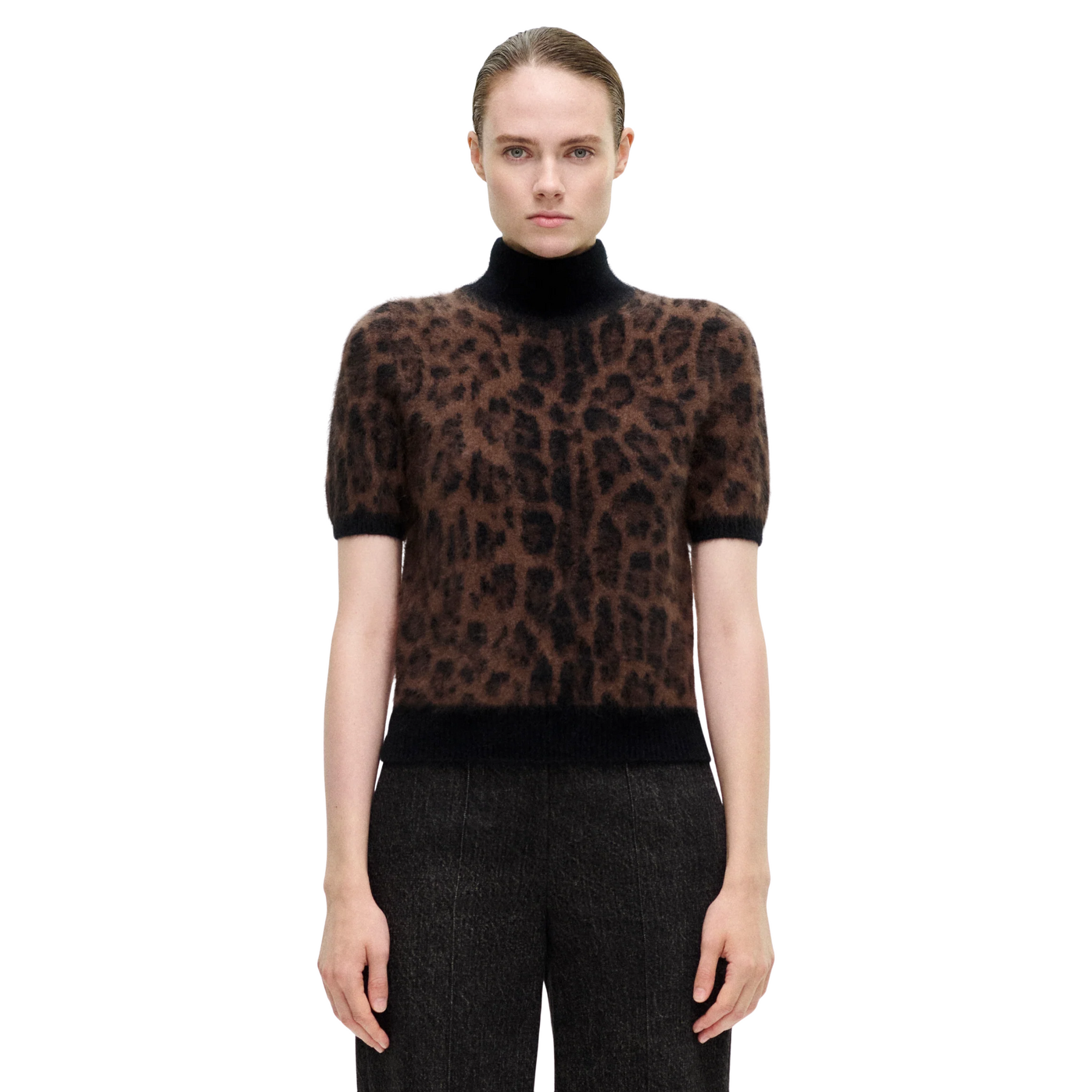 The Ari Top is crafted from premium brushed 100% cashmere with an ultra‑soft, weightless feel. The leopard jacquard is masterfully woven.