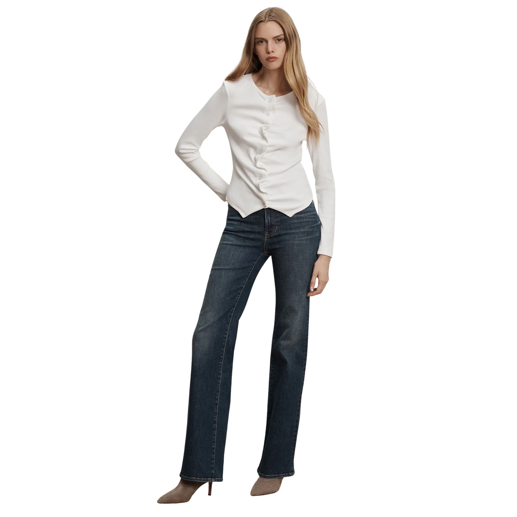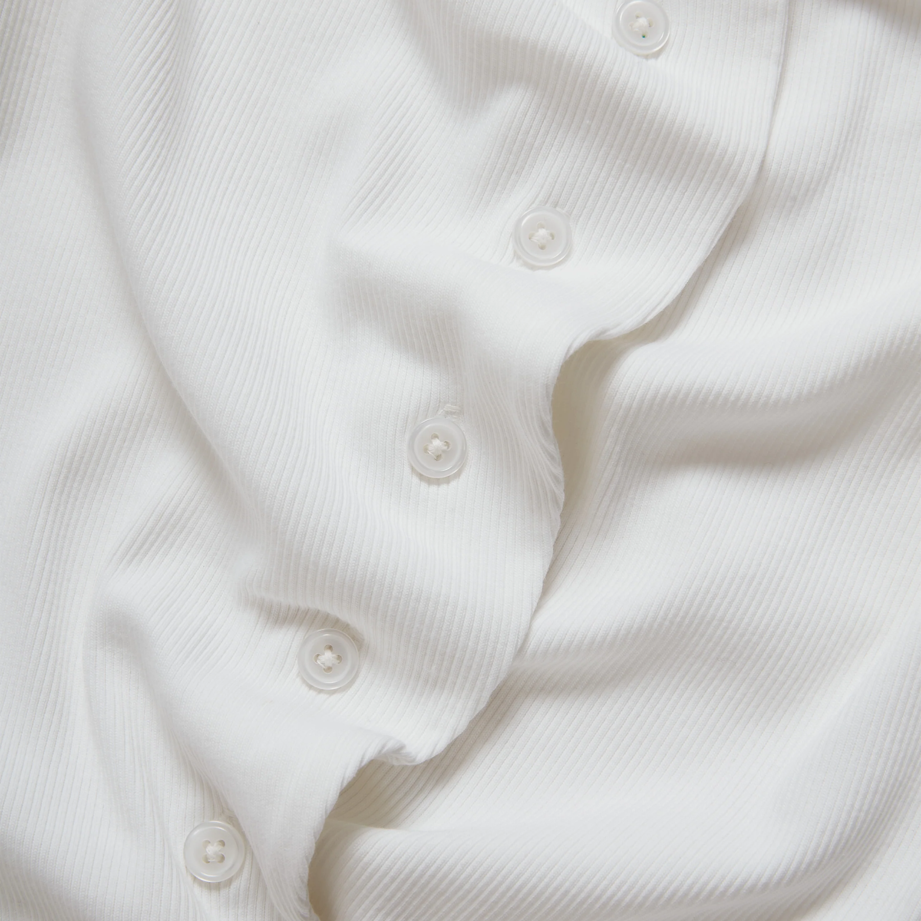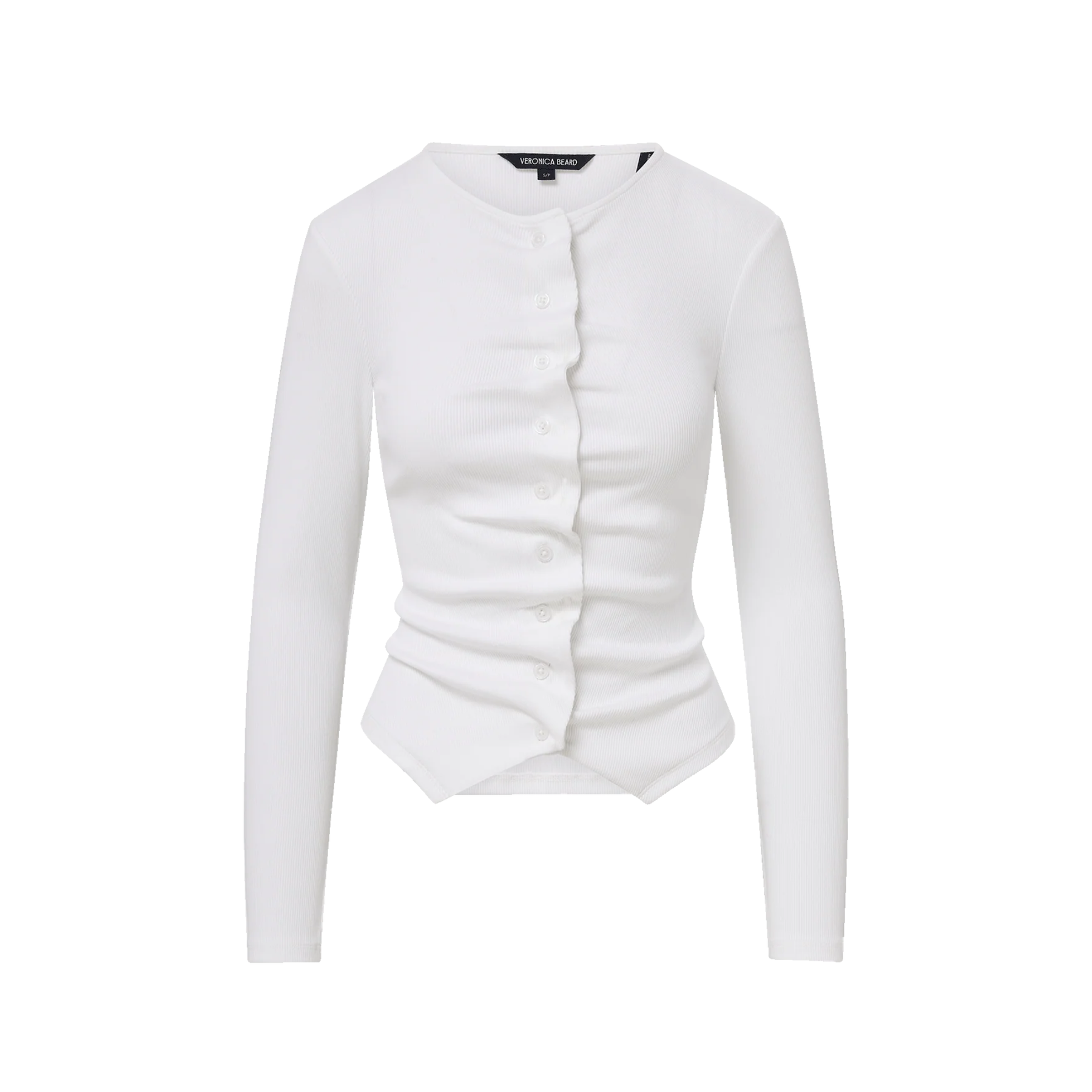 The classic long-sleeve tee—with a feminine twist. Crafted from white stretch cotton, the Jasminah top features a button-front silhouette that’s intentionally ruched to create an accordion-like effect, adding texture and depth. Long sleeves and a split hem complete the design. Perfect for elevating any day look—style this crewneck top with VB denim for off-duty polish or with wide-leg trousers for the office.