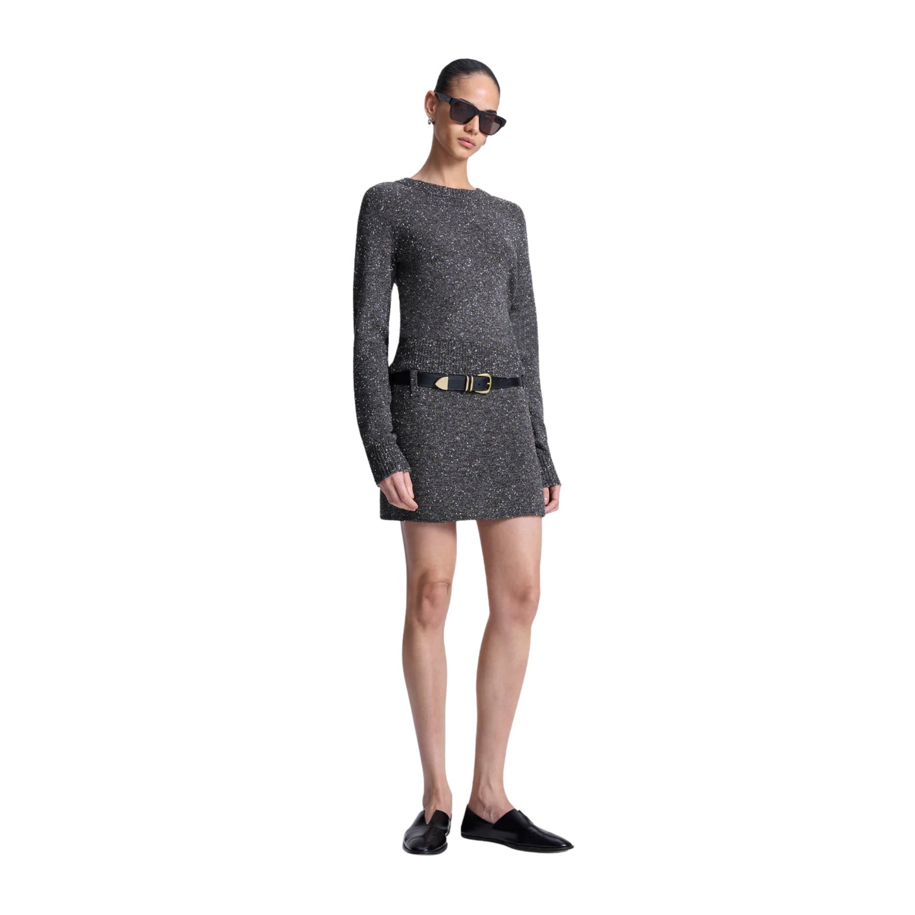 The Zoe Sweater is crafted from a luxurious blend of Italian yarns in a textured bouclé tweed knit, offering a polished yet cozy look. Its crewneck, fitted silhouette, and ribbed hem and cuffs make it a versatile piece for layering or wearing on its own.