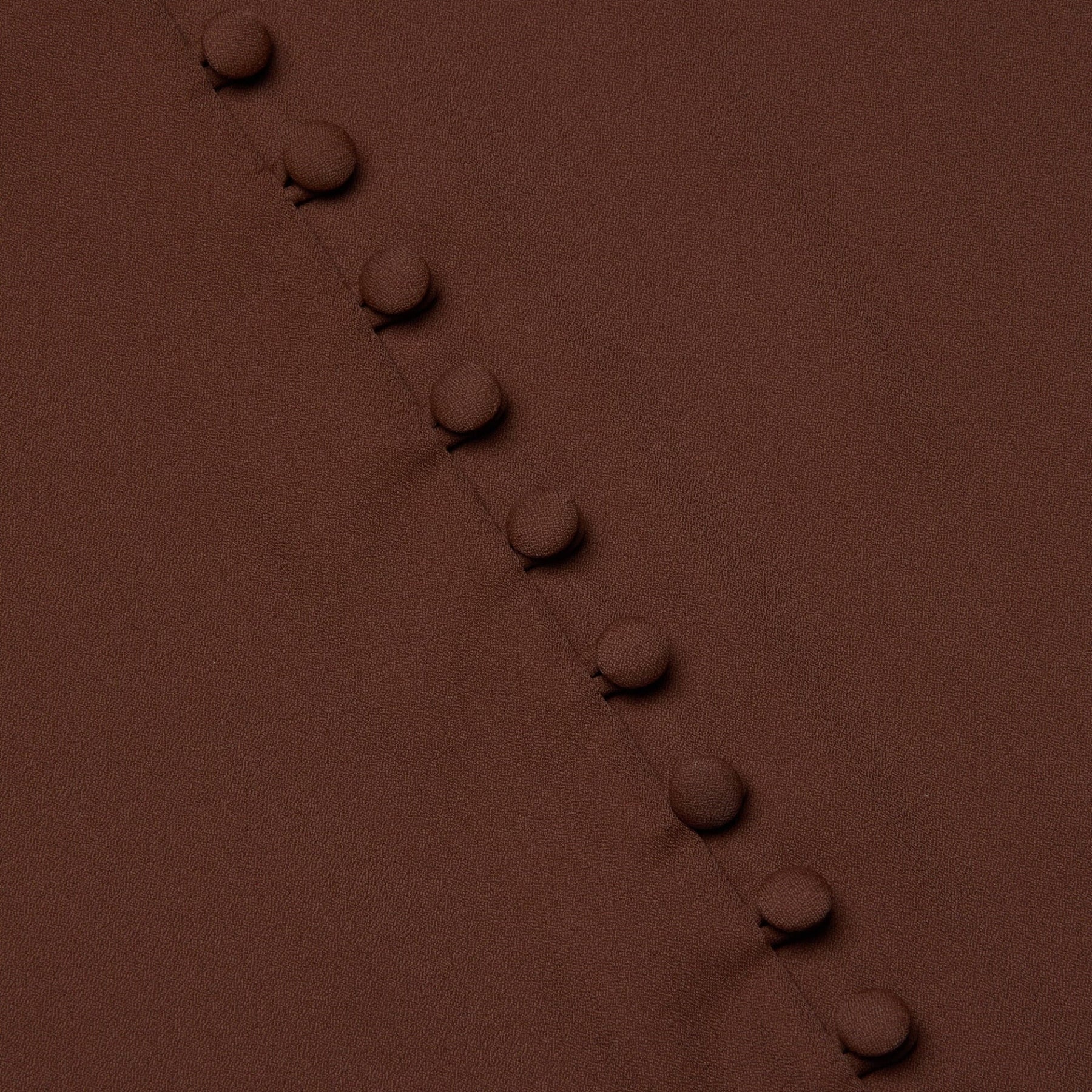 The Ava Lace Cuff Blouse is a wardrobe essential that combines femininity and versatility. Its lace-trimmed sleeves add a romantic touch, while the deep Hot Fudge Brown hue makes it perfect for both workday sophistication and evening elegance. Pair it with tailored trousers, denim, or skirts for a polished look that never goes out of style.