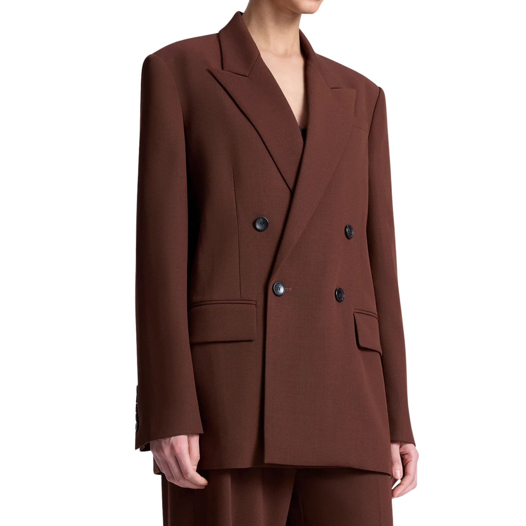 With its sleek double-breasted cut and tailored proportions, the Calla Jacket offers an effortlessly polished look. Designed for layering over blouses or knits, it’s a modern wardrobe essential that transitions seamlessly from office-ready to after-dark sophistication.