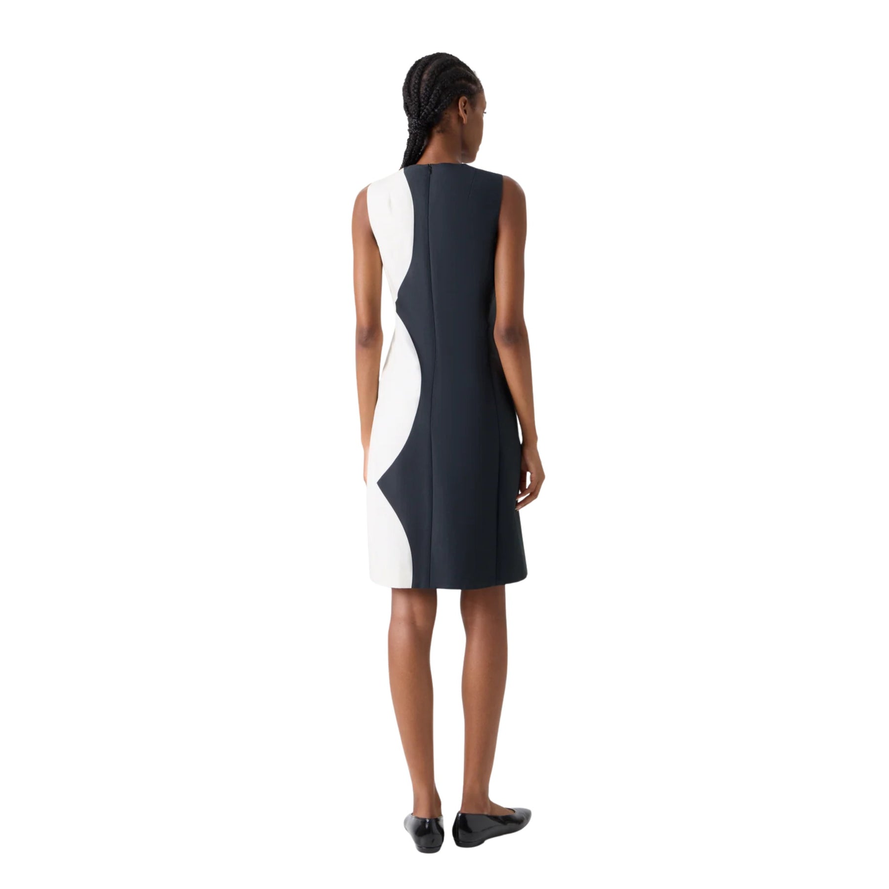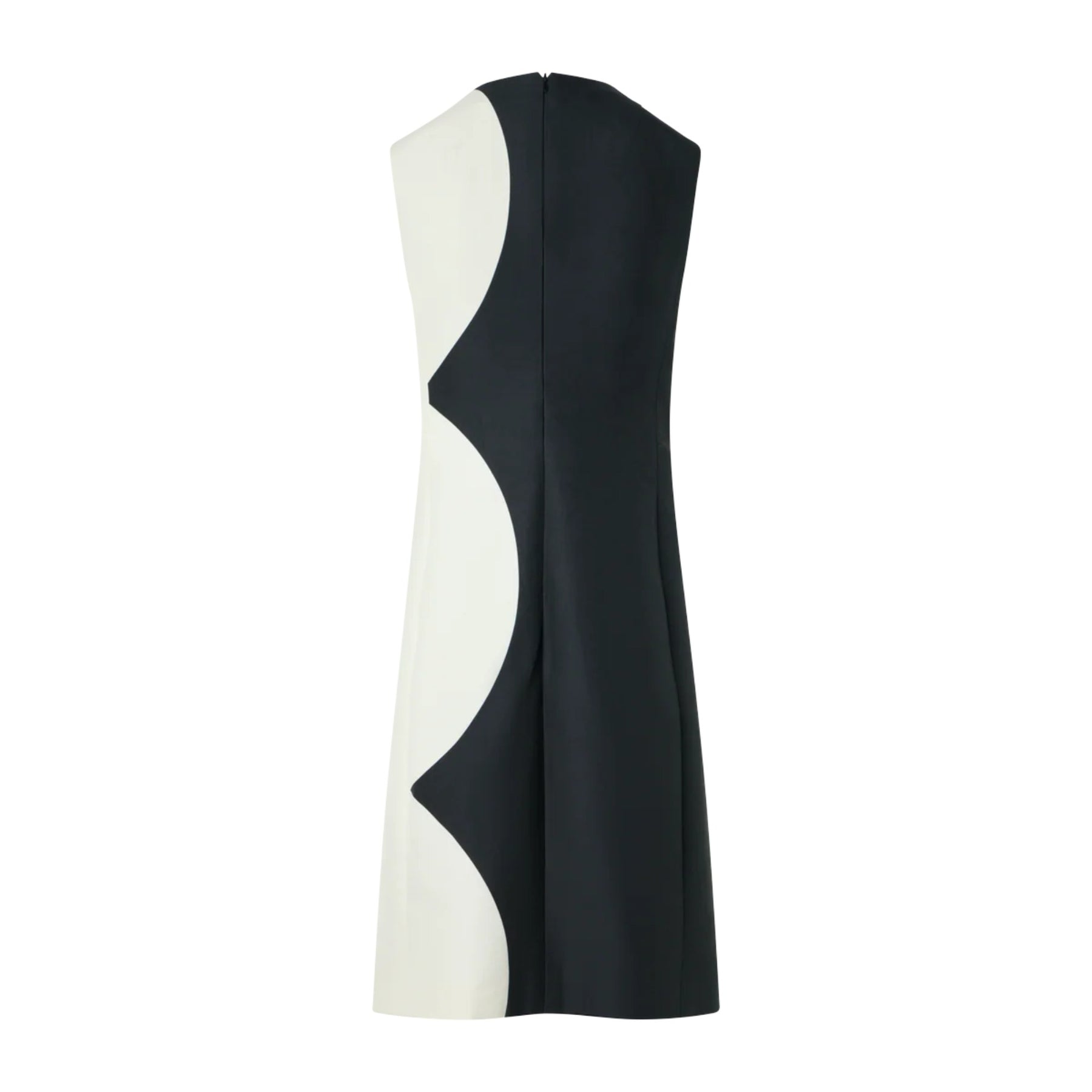Graphic contrast meets modern elegance in the Cloud Print Sheath Dress by Akris. Crafted from luxurious silk-cotton double-face fabric, this sleeveless design features a bold cloud-inspired motif that creates a sculptural visual effect. The clean crew neckline and gently flared silhouette balance structure and fluidity, resulting in a sophisticated statement piece suited for both day and evening.