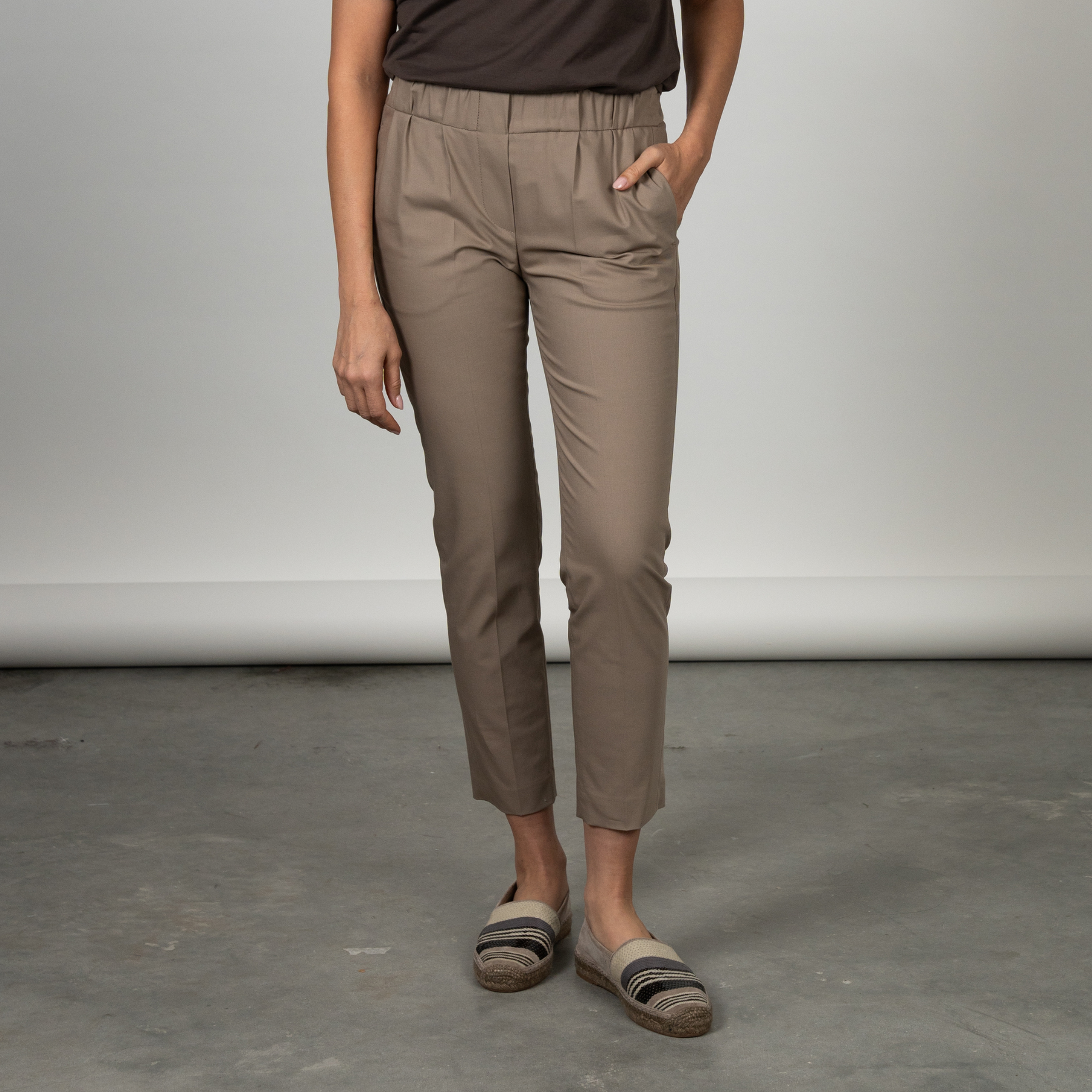 Polished yet relaxed, these Brunello Cucinelli pants feature a tapered ankle silhouette with a comfortable elastic waistband. Lightweight and refined, they’re perfect for everyday dressing with an elevated touch.