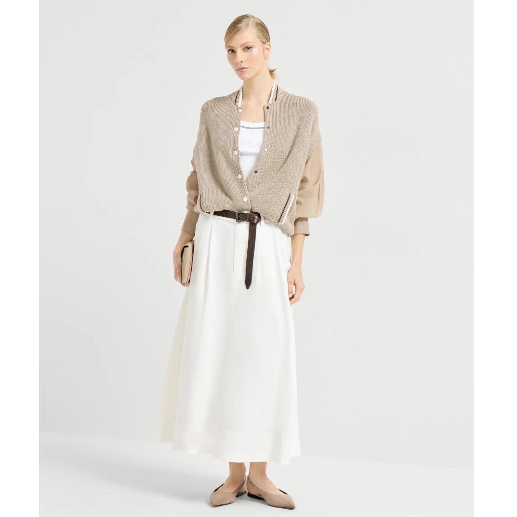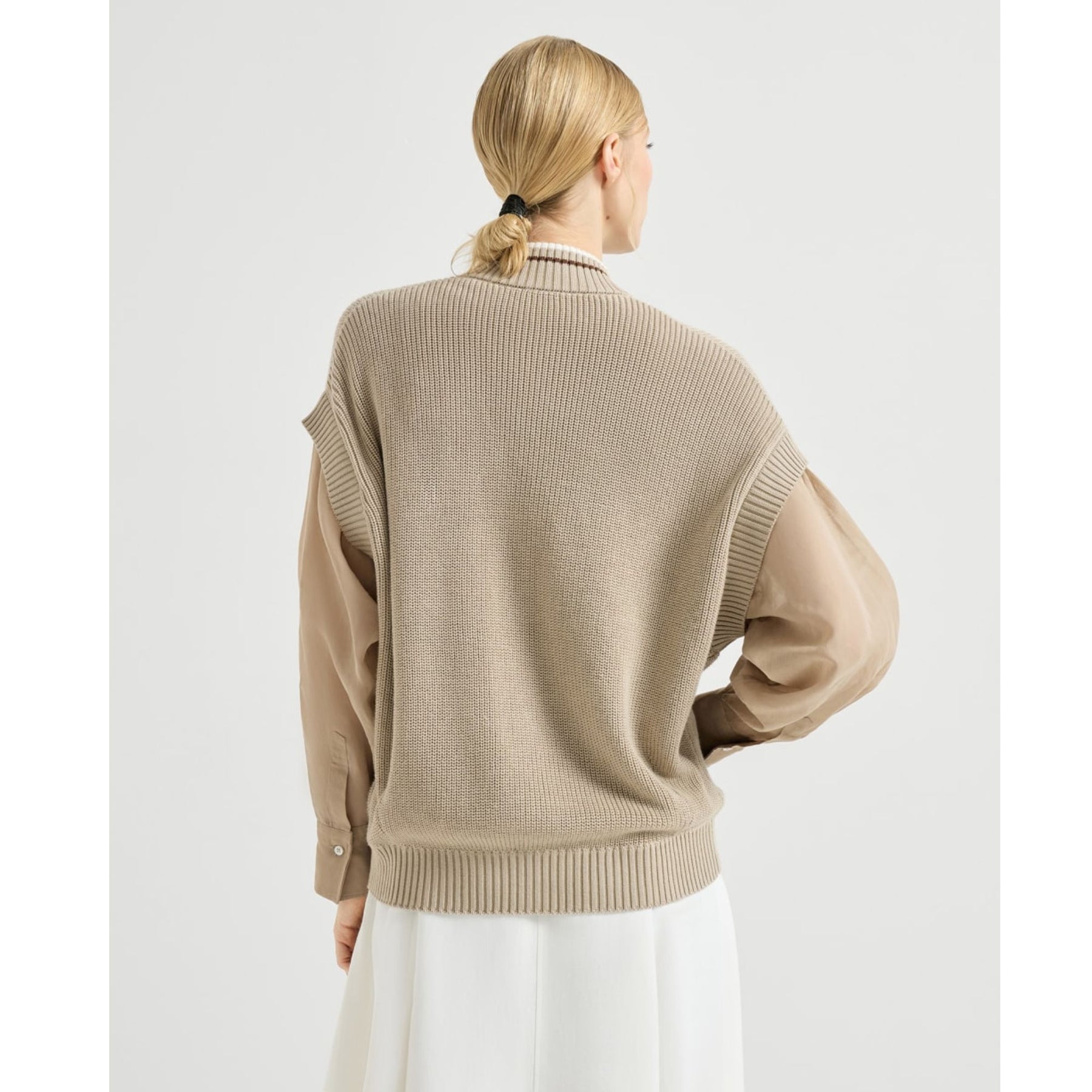 This refined jacket seamlessly blends structured elegance with contemporary ease. Premium cotton ribbing forms the foundation, while delicate organza sleeves introduce an unexpected textural contrast and graceful movement.