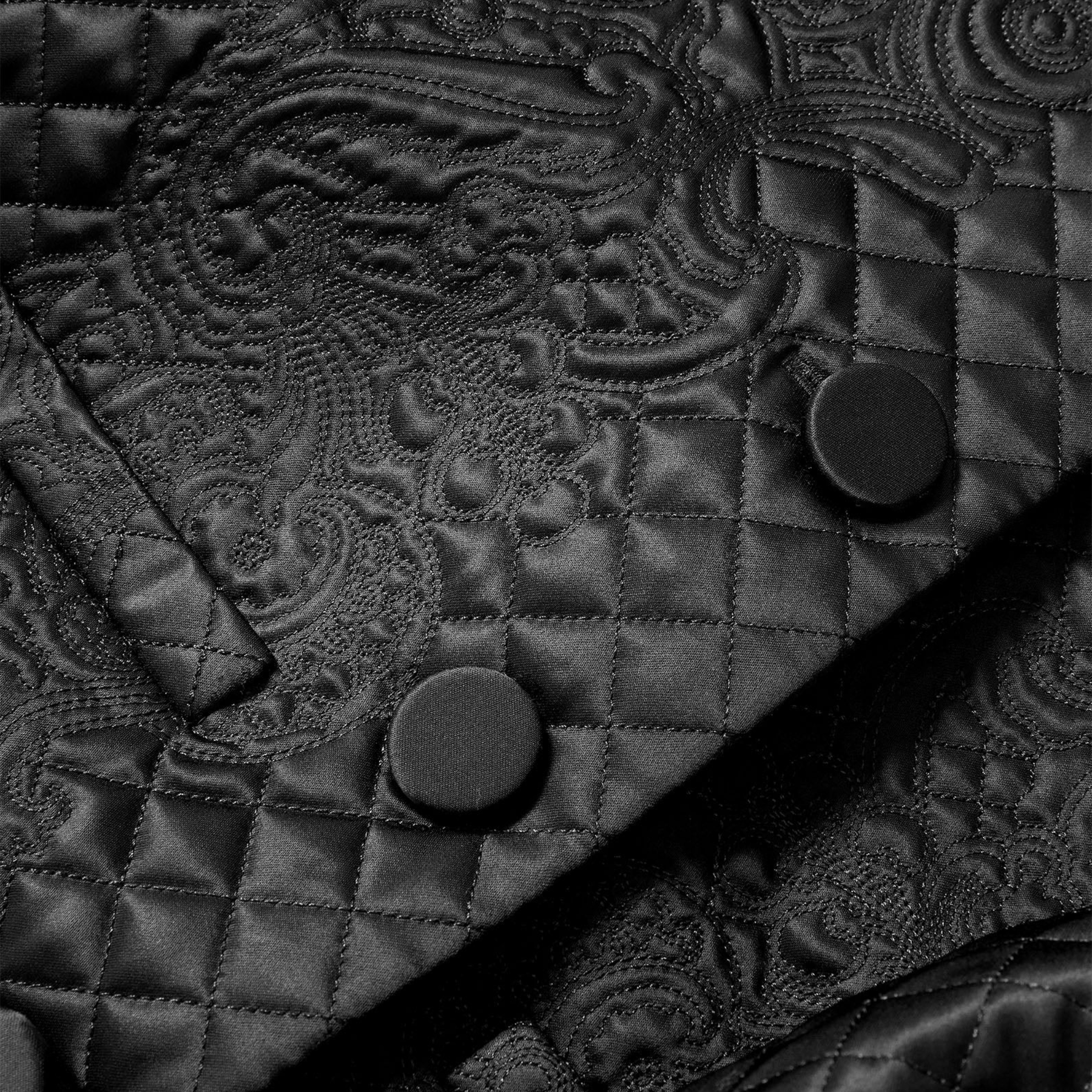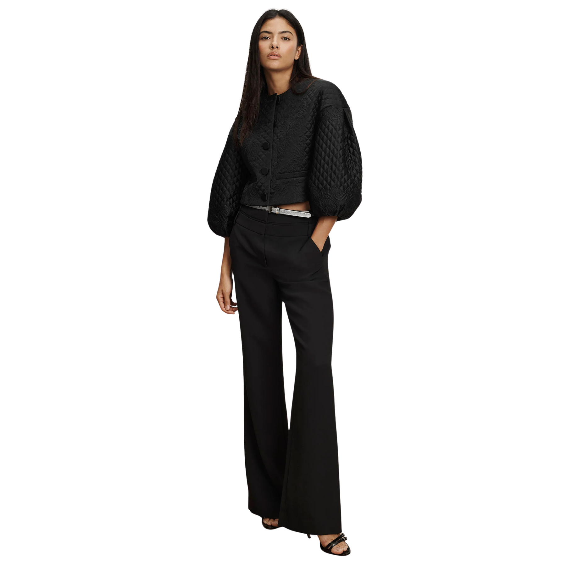 A jacket that makes an entrance. Crafted from smooth, subtly lustrous tailoring fabric, the Drake jacket is defined by intricate allover diamond-and-floral quilting. Voluminous balloon sleeves balance its cropped, collarless silhouette for dramatic effect. Front welt pockets and self-covered buttons complete the look. Style with a slim, black pant for an elegant, modern finish.