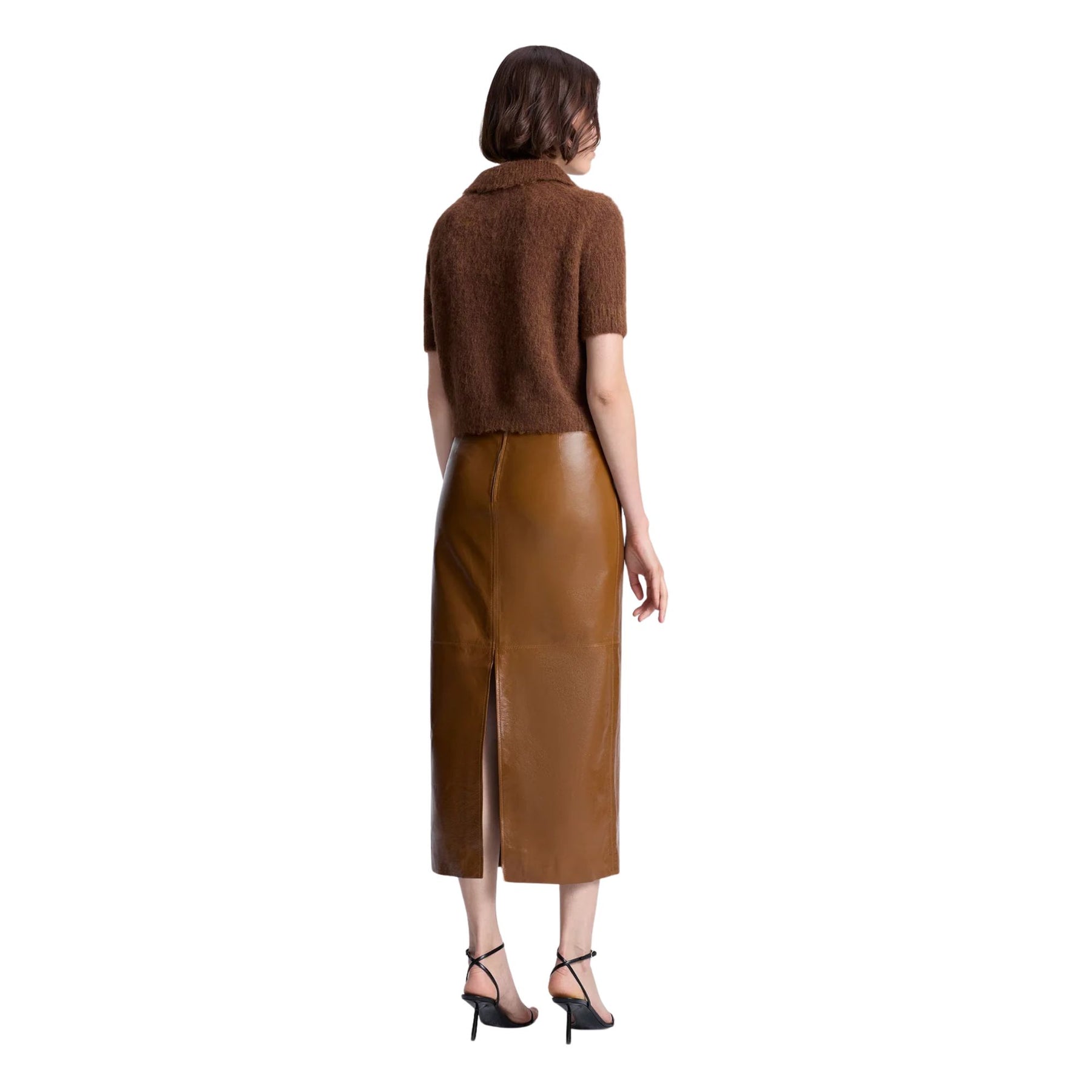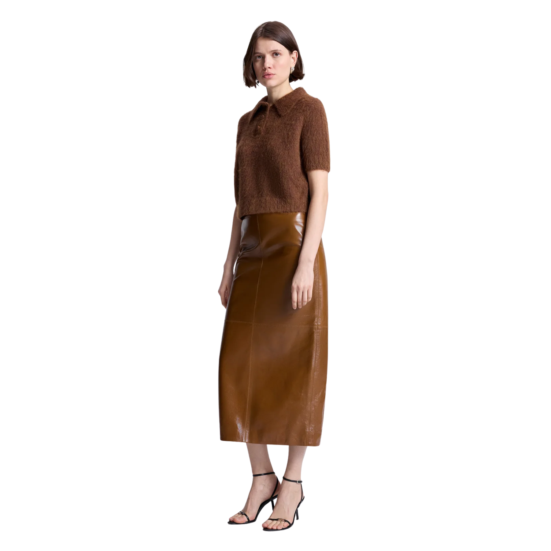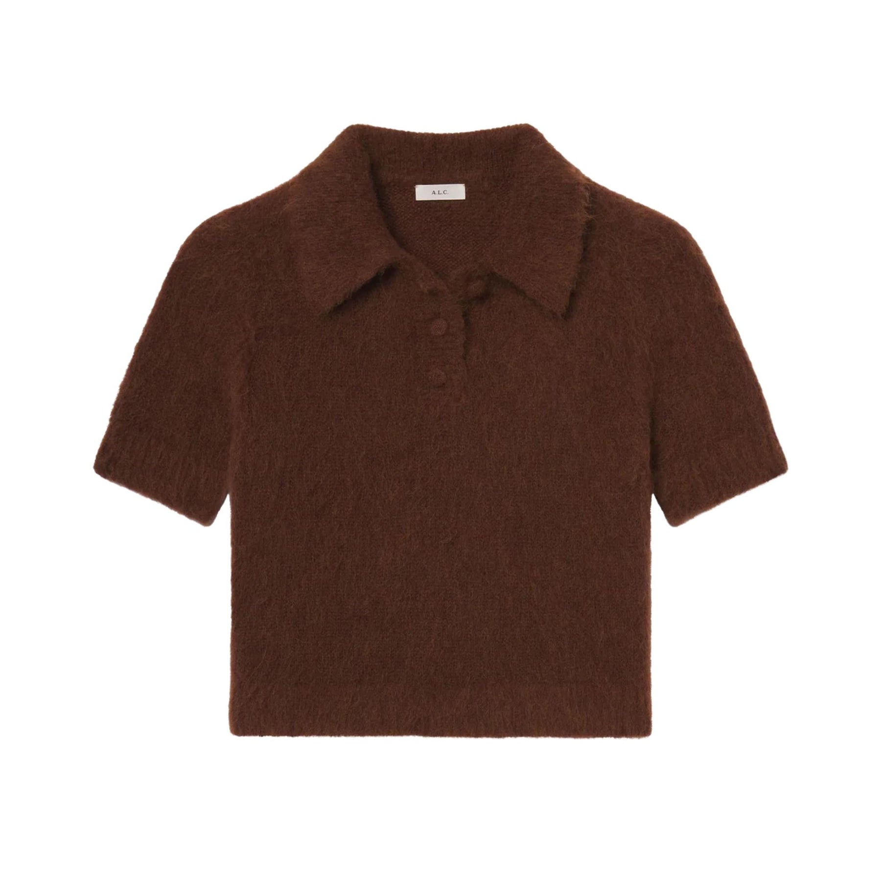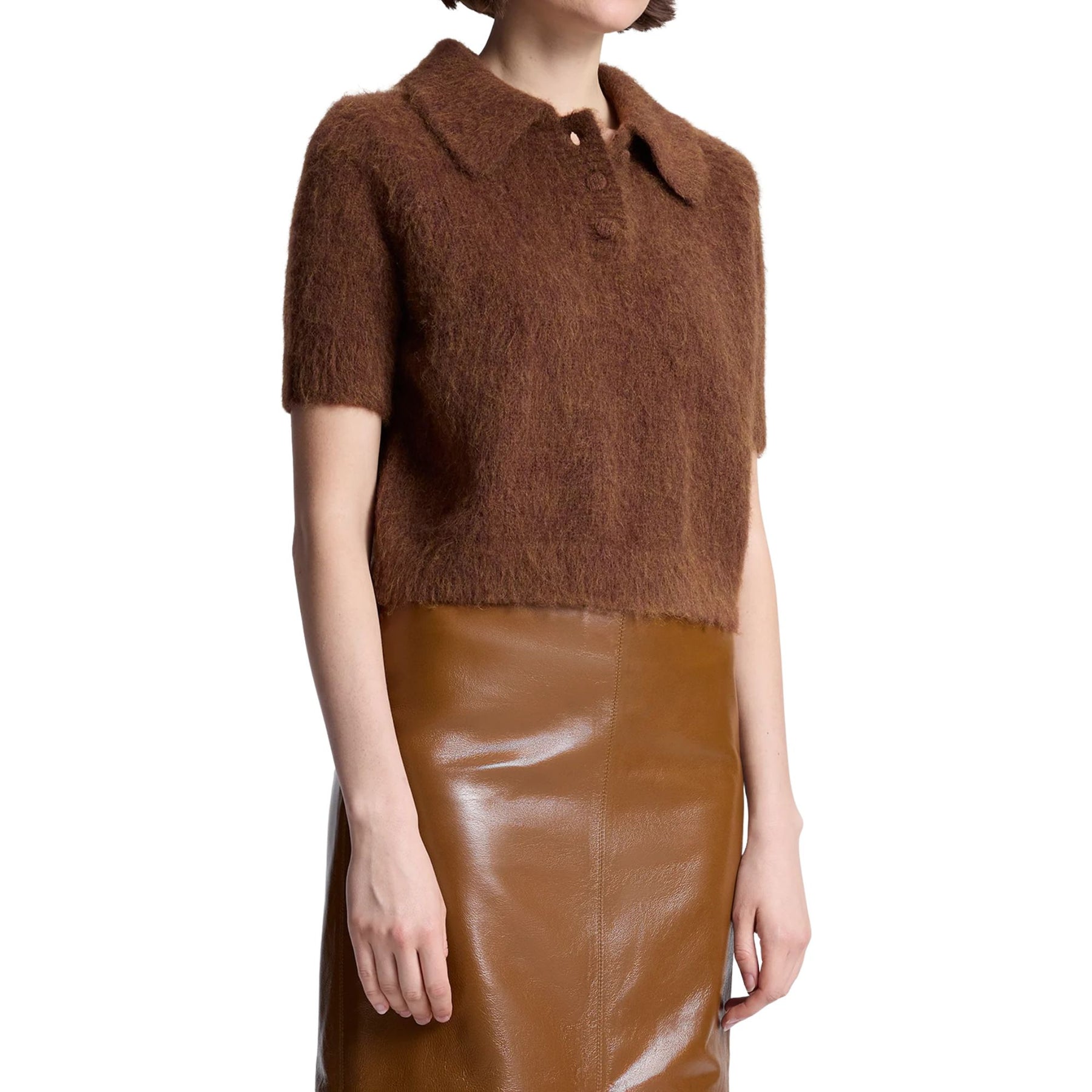 Brushed alpaca lends softness and lightness to this collared knit, detailed with matching buttons, mid-length sleeves, and a cropped hem.