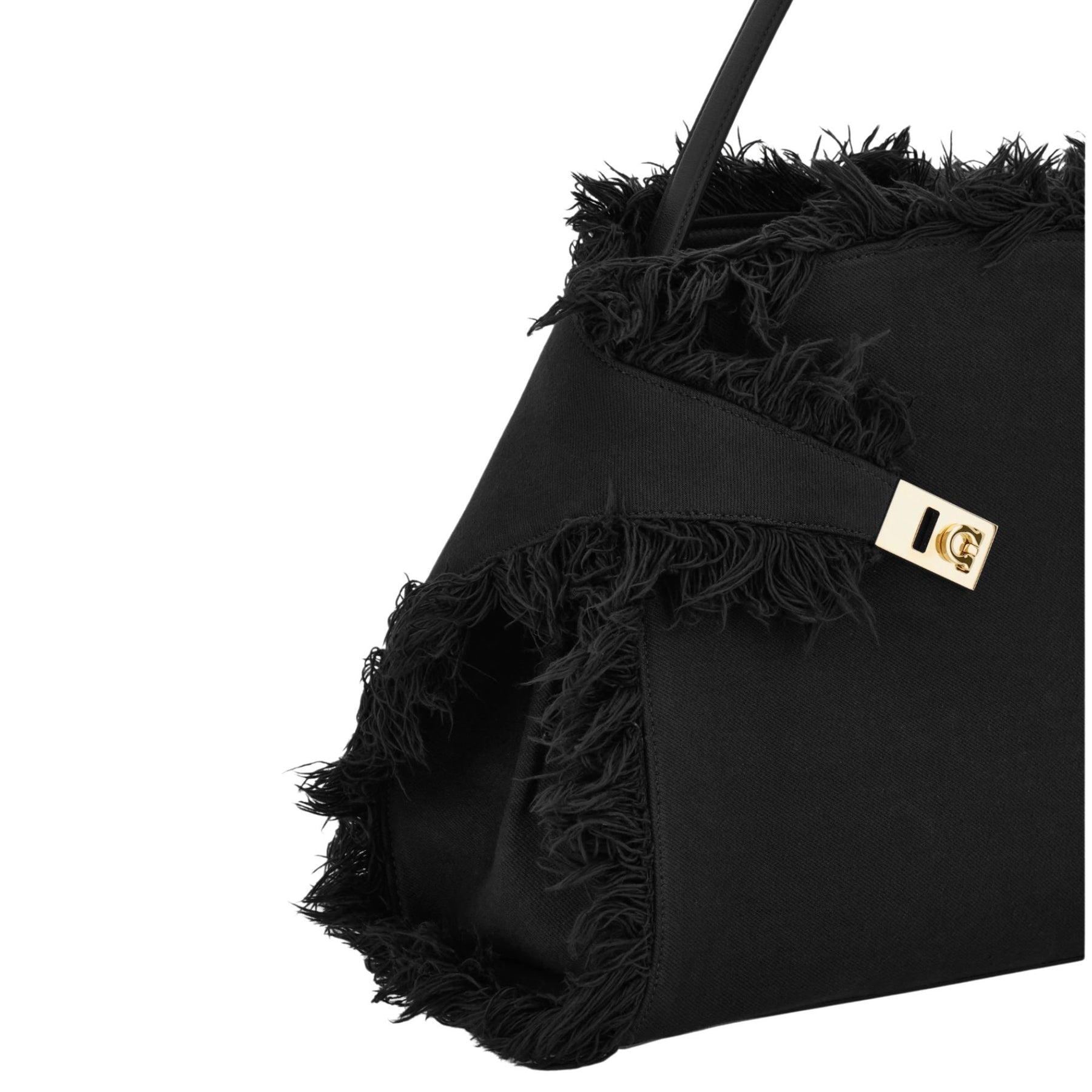 A fresh, runway-driven take on the iconic Hug silhouette. Maximilian Davis adds movement and attitude with fringed edges and two-tone panels, giving the bag a bold, modern feel without losing its refined Italian craftsmanship.