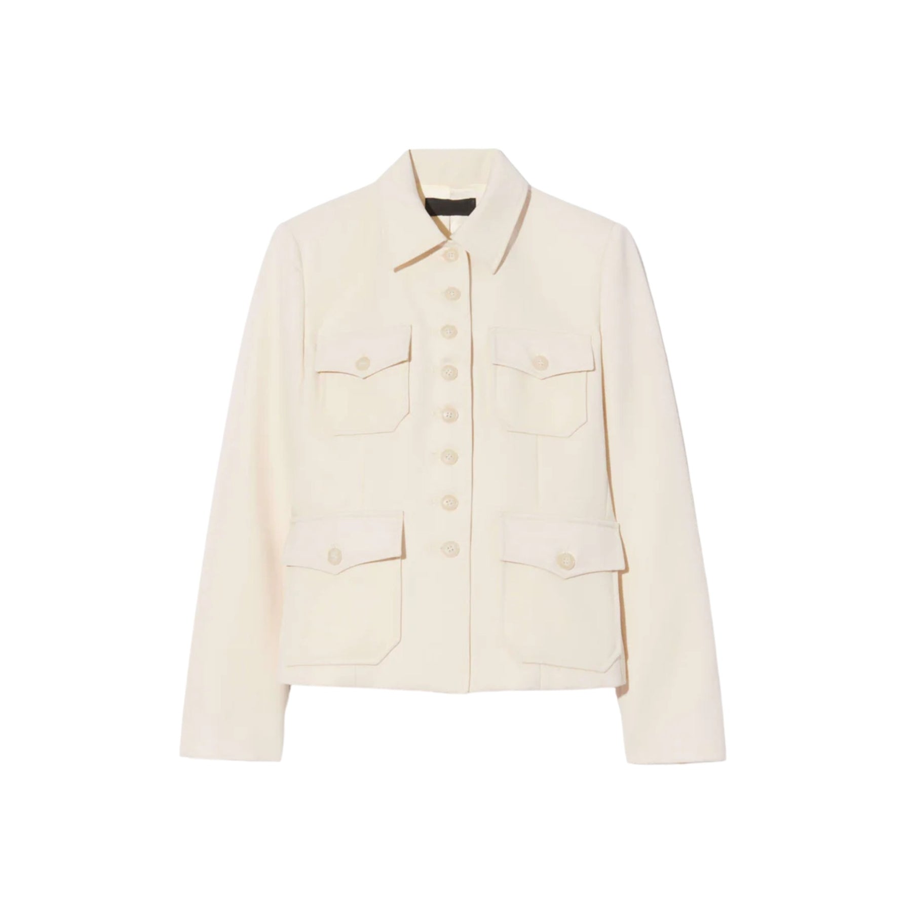 Polished with a utilitarian edge, this Nili Lotan Jamison jacket is crafted from luxurious virgin wool and tailored in a slim, structured silhouette. Designed with a classic collar and multiple patch pockets with flaps, it features logo horn buttons at the front and cuffs, delivering timeless sophistication with modern functionality.