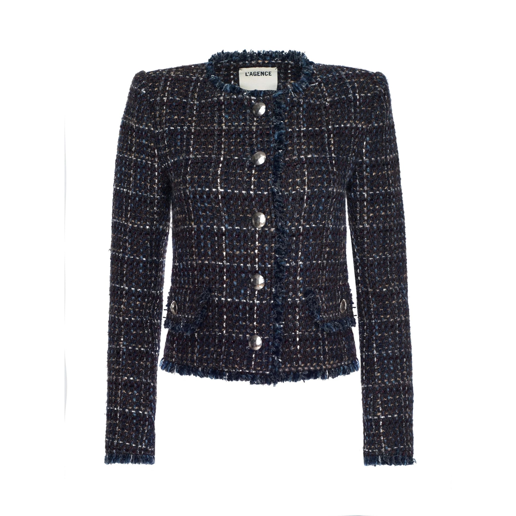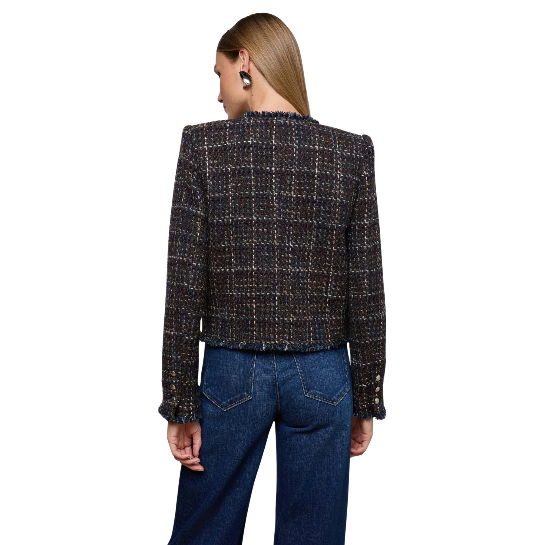 The Zaya Trim Jacket in textured Italian tweed is a modern reinvention of a timeless classic, merging ladies-who-lunch sophistication with downtown cool. Recently highlighted in our Fall ’25 Collection, this cropped tweed jacket is finished with frayed trims and bold statement buttons, making it the ultimate layering piece for every wardrobe.
