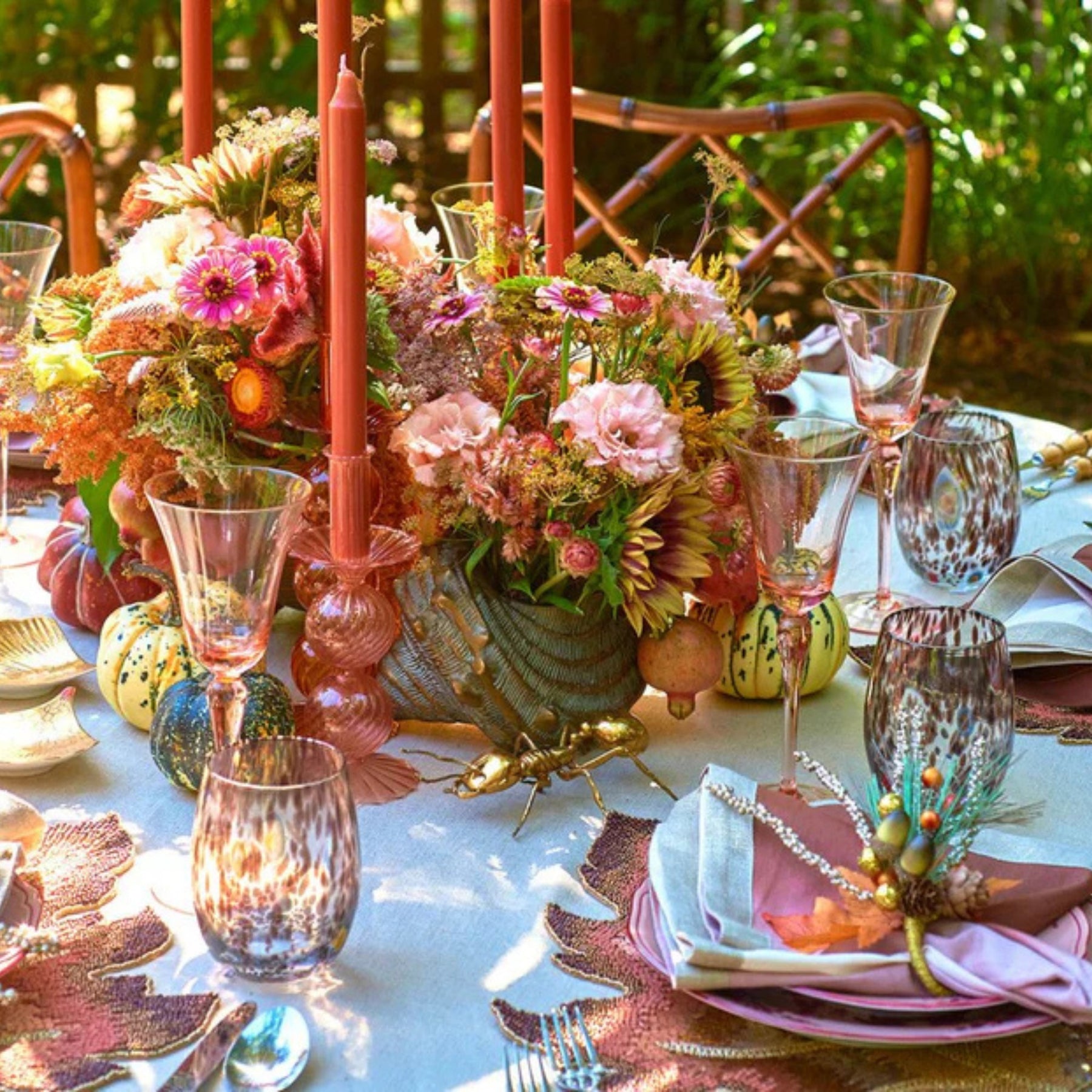 The Bella Short Candle Holders – Blush balance modern design with timeless romance, making them a versatile accent for everyday dining, celebrations, and layered tablescapes. Their luminous glass and graceful form create a polished statement whether styled alone or grouped with other Kim Seybert glass pieces.