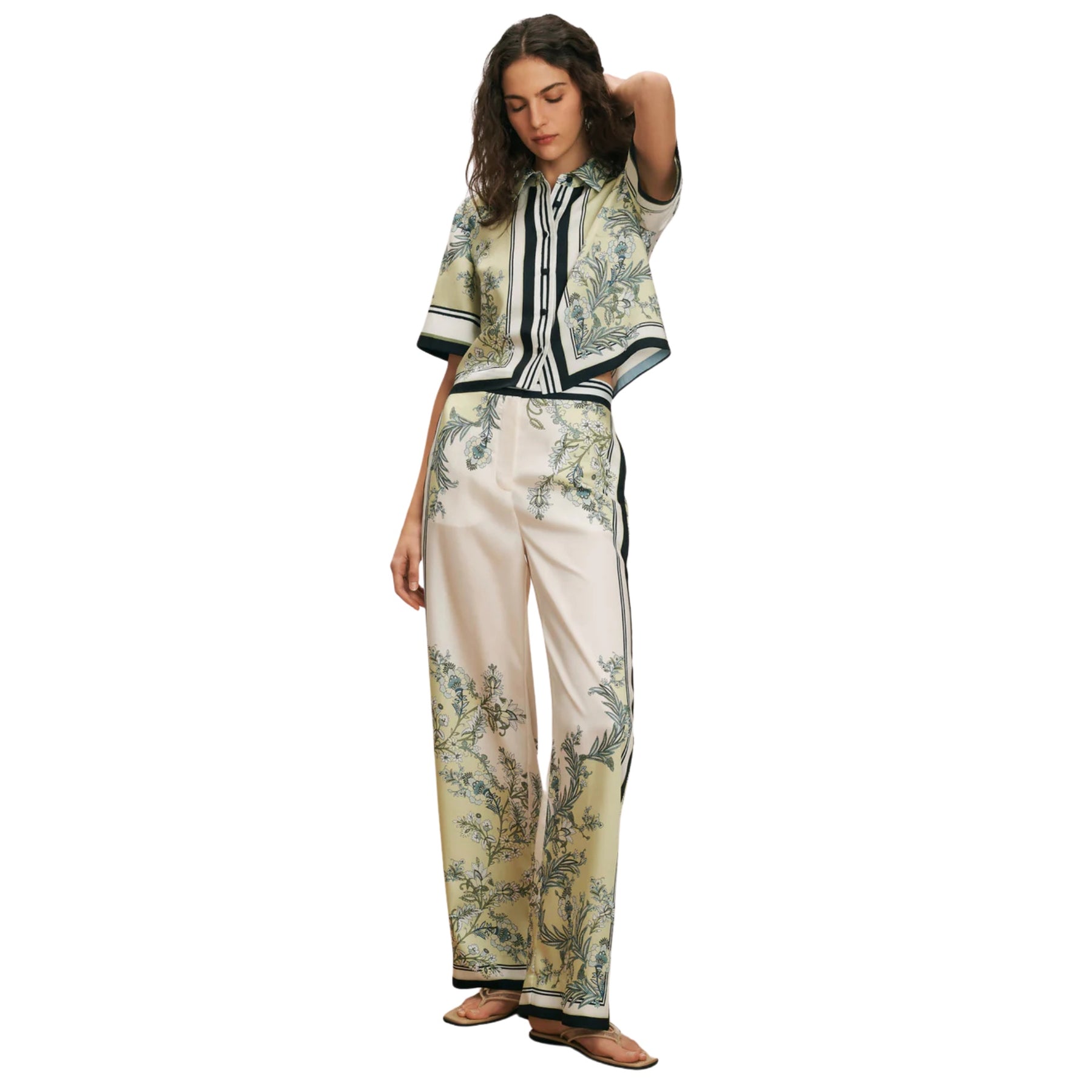 Scarf-inspired botanical print in ivory, pistachio green, and black