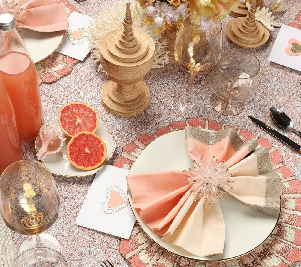 The new version of our ombre Dip Dye napkins in blush and gold is fresh and oh so pretty. They are hand-dipped and dyed and accented with a metallic foil facing. Unfurl the napkin and be mesmerized by the gradation of colors.