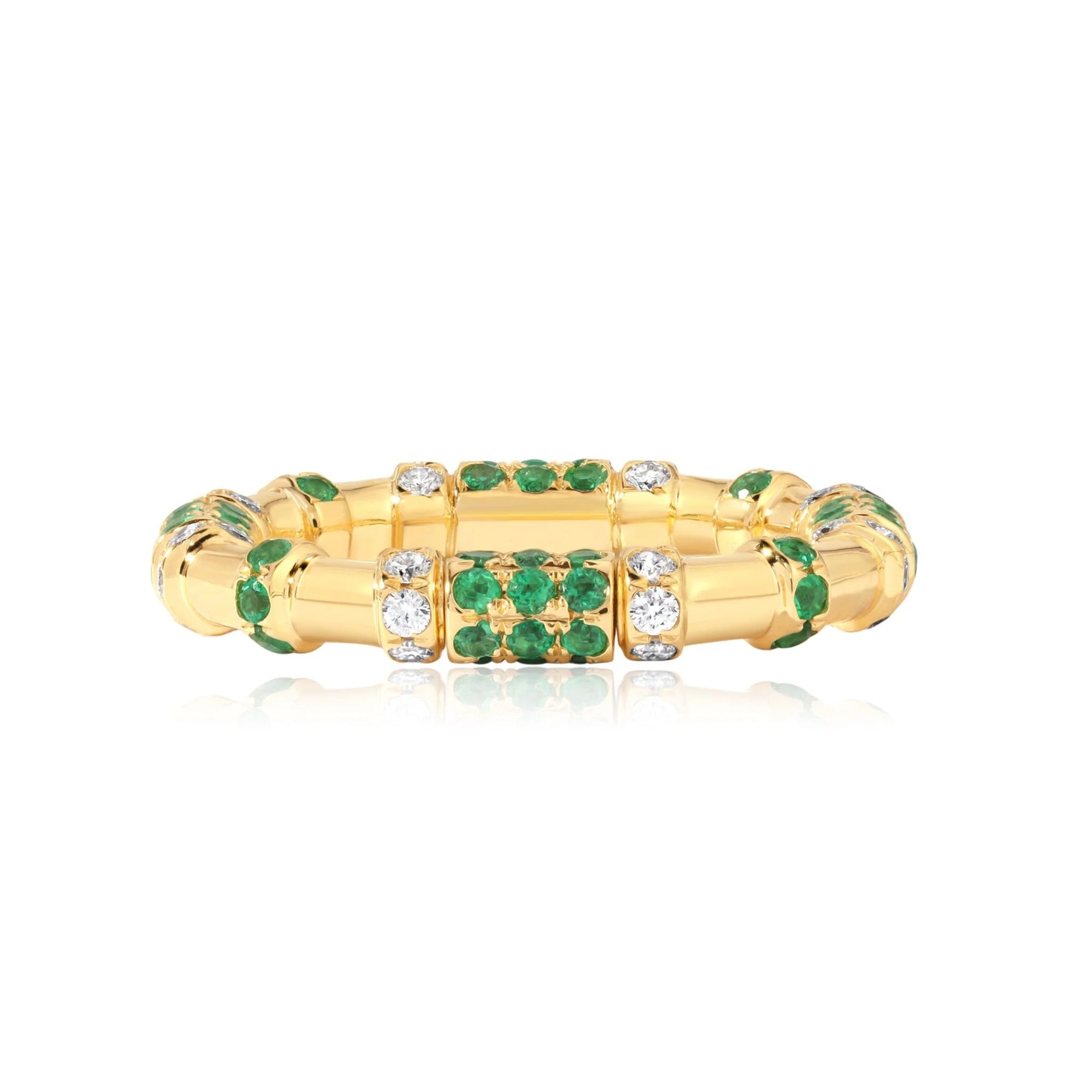 Vibrant, polished, and endlessly sophisticated, the Emerald & Diamond Cavaletti Band Ring brings a fresh pop of color to fine jewelry. Lush green emeralds are paired with brilliant white diamonds in a sculptural cavaletti setting that creates depth, texture, and light from every angle. Crafted in radiant gold, this band feels modern yet timeless — bold enough to stand alone and refined enough to stack. It’s the kind of piece that instantly elevates both everyday looks and special-occasion styling, offering a perfect balance of color, sparkle, and craftsmanship.