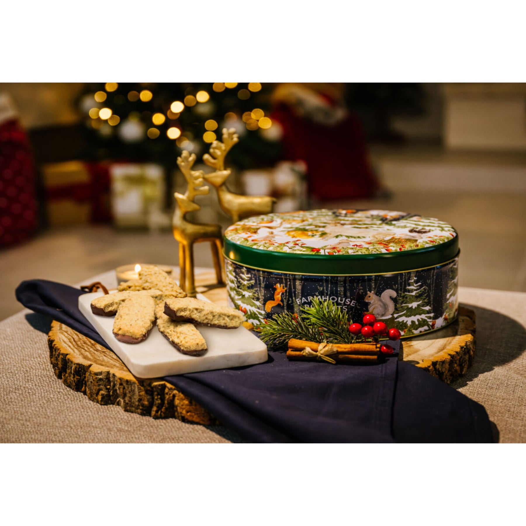 The Woodland Scene Cake Tin combines storybook holiday artwork with a delicious trio of Oat Flips. It’s a festive treat that delights both the eye and the palate—and the tin becomes a charming keepsake long after the biscuits are gone.