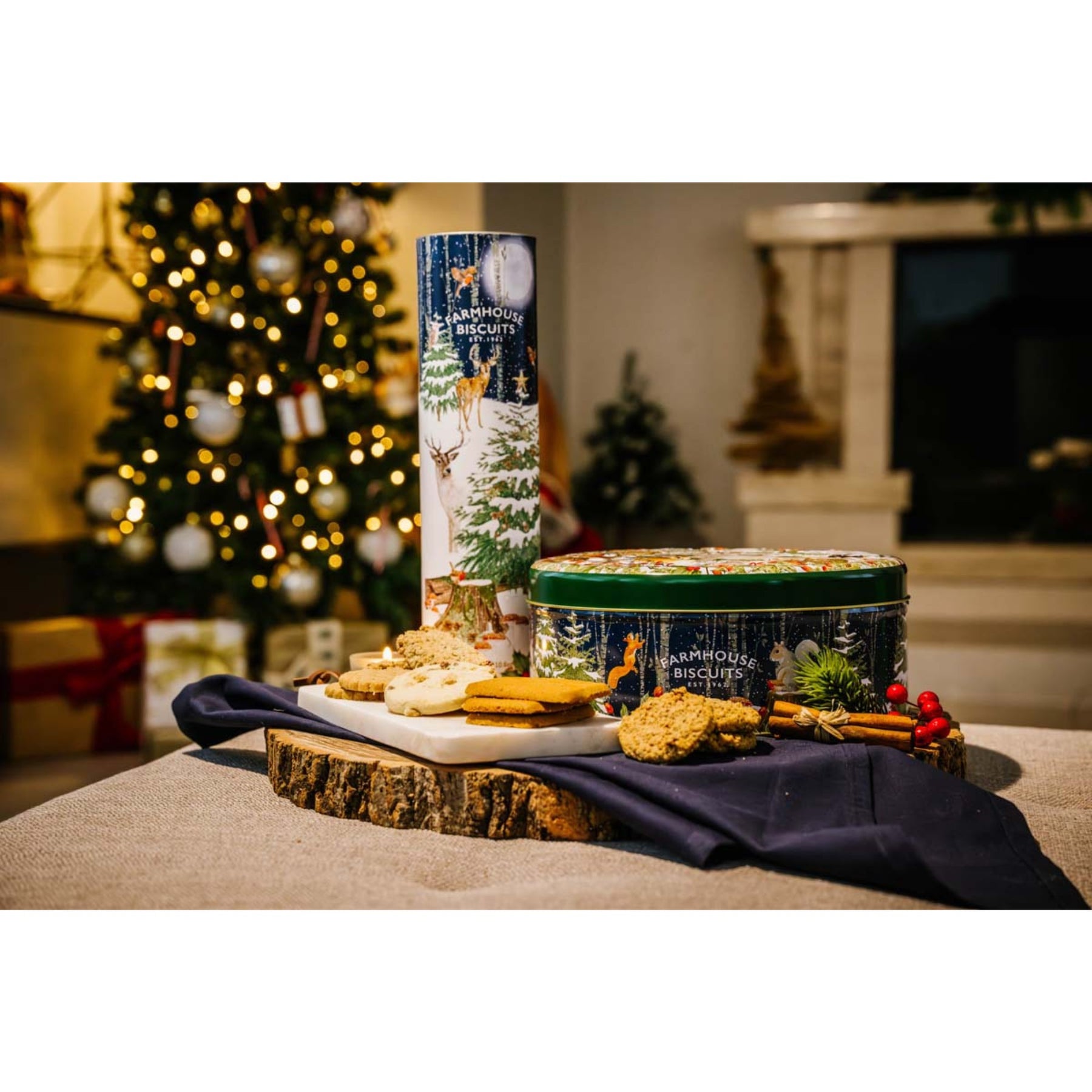 The Woodland Scene Tube brings the charm of a wintry forest to your festive celebrations. Beautifully illustrated with woodland creatures and snow-dusted evergreens, this decorative tube is filled with spiced oat and sultana biscuits — a comforting treat perfect for cozy evenings or gifting during the holidays.
