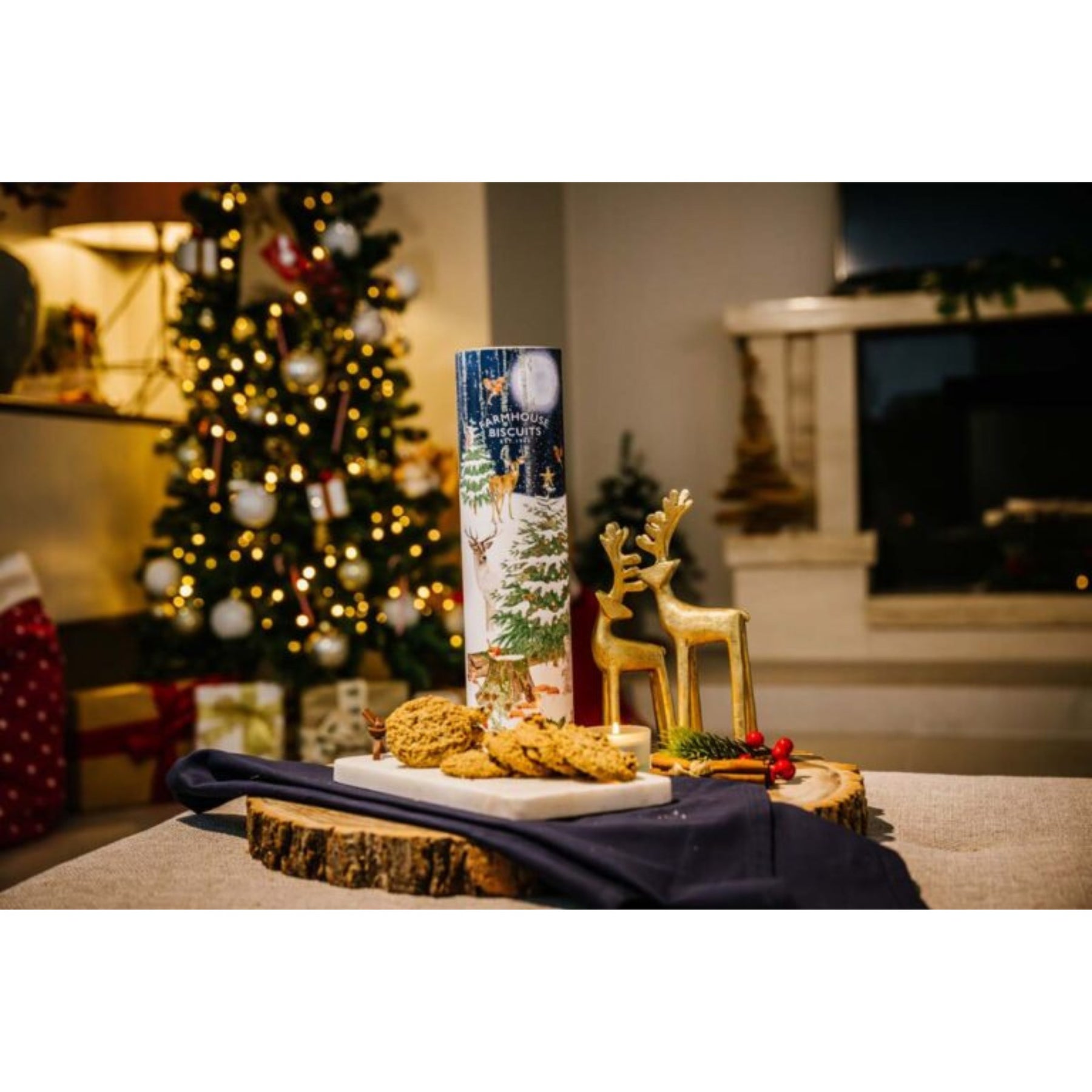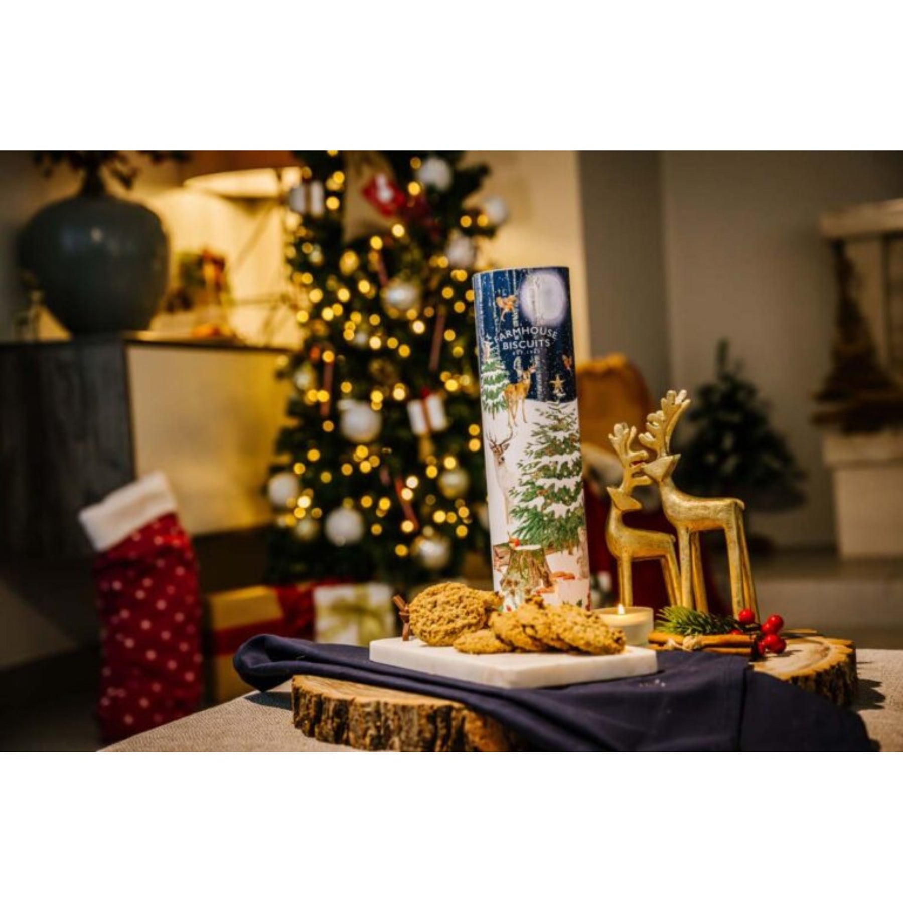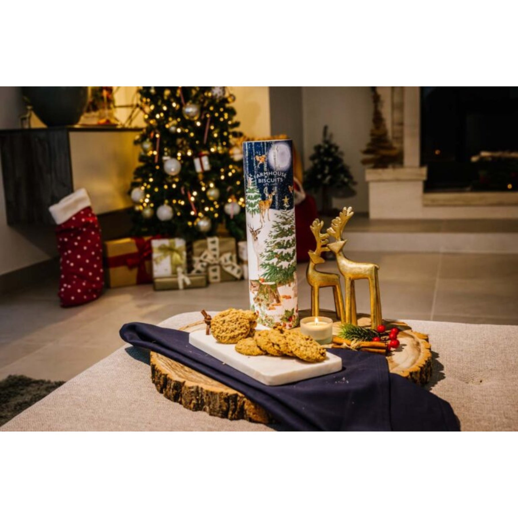The Woodland Scene Tube blends festive artistry with irresistible flavor. Each spiced oat and sultana biscuit offers a comforting balance of sweetness and spice, while the beautifully designed packaging captures the cozy essence of winter. A delightful treat to share or savor by the fire.